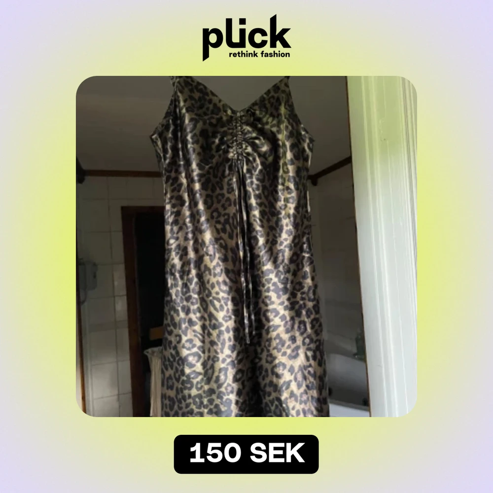 Så fin leopardklänning. Mönstrad i leopard och tyget är satin.🌸Miniklänning med fin detalj vi bröstet.