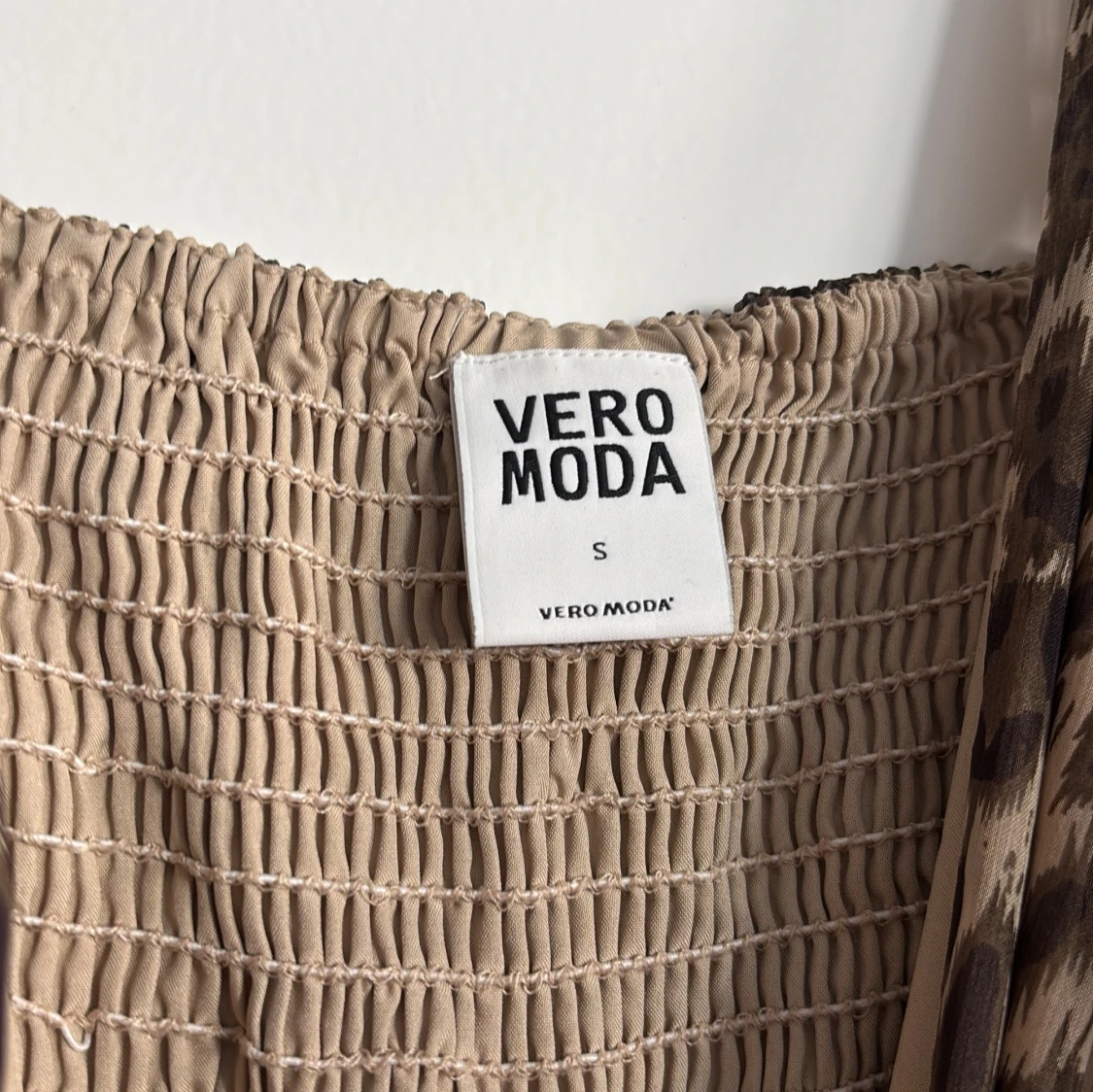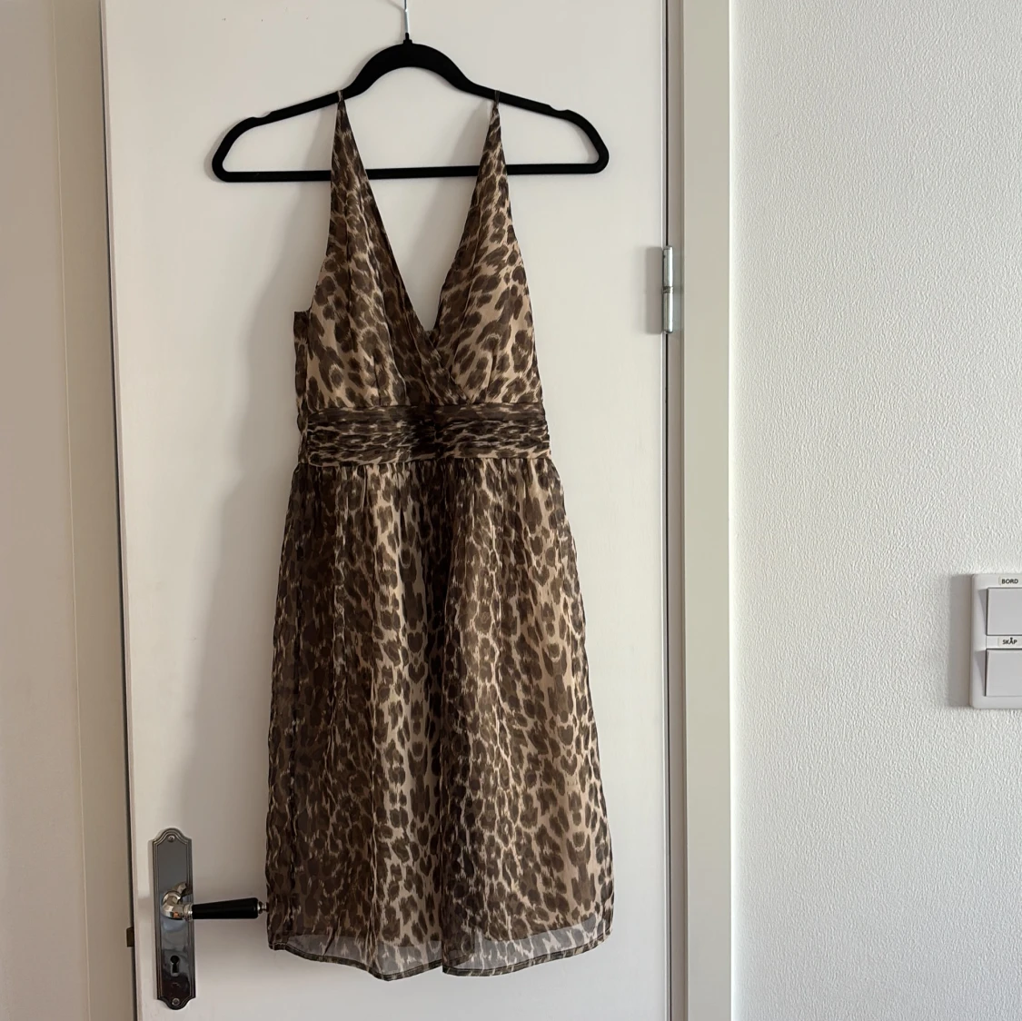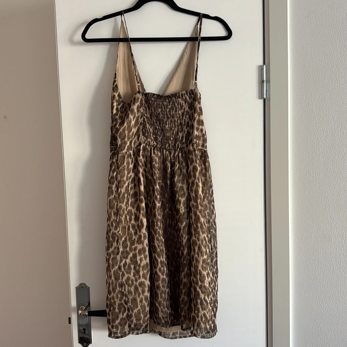 Snygg leopardmönstrad klänning från Vero Moda med djup v-ringning och smala axelband.