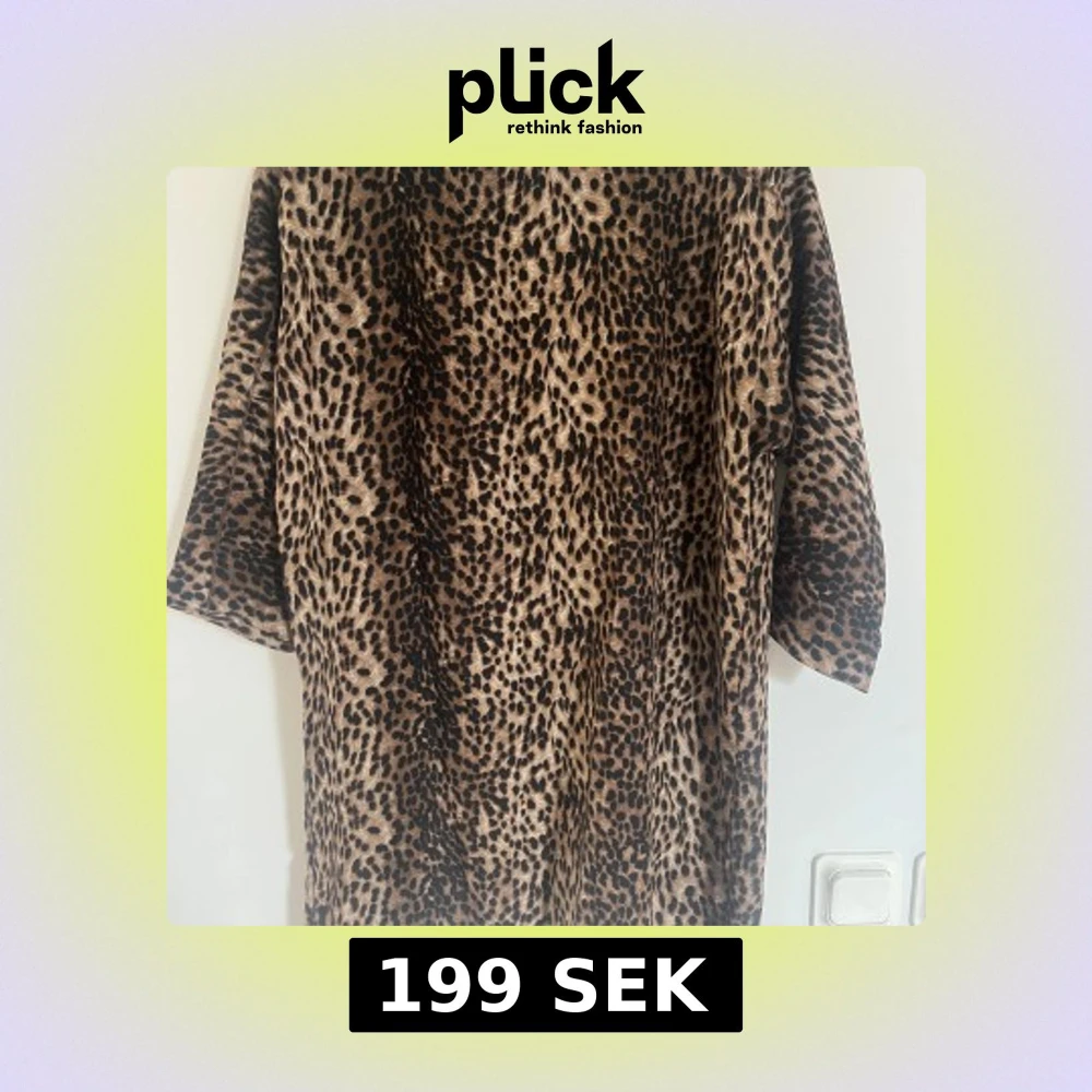 Snygg leopardmönstrad klänning/tunika från Zara med trekvartsärm. Perfekt för att sticka ut med ett djärvt mönster. Klänningen har en bekväm passform och är tillverkad i ett mjukt material.