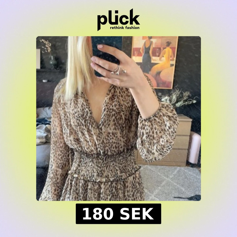 Säljer en snygg leopardmönstrad klänning från Zara med v-ringning och långa ärmar. Klänningen har smock i midjan som ger en fin passform och ett luftigt fall. Perfekt för dig som gillar djurmönster och vill sticka ut.