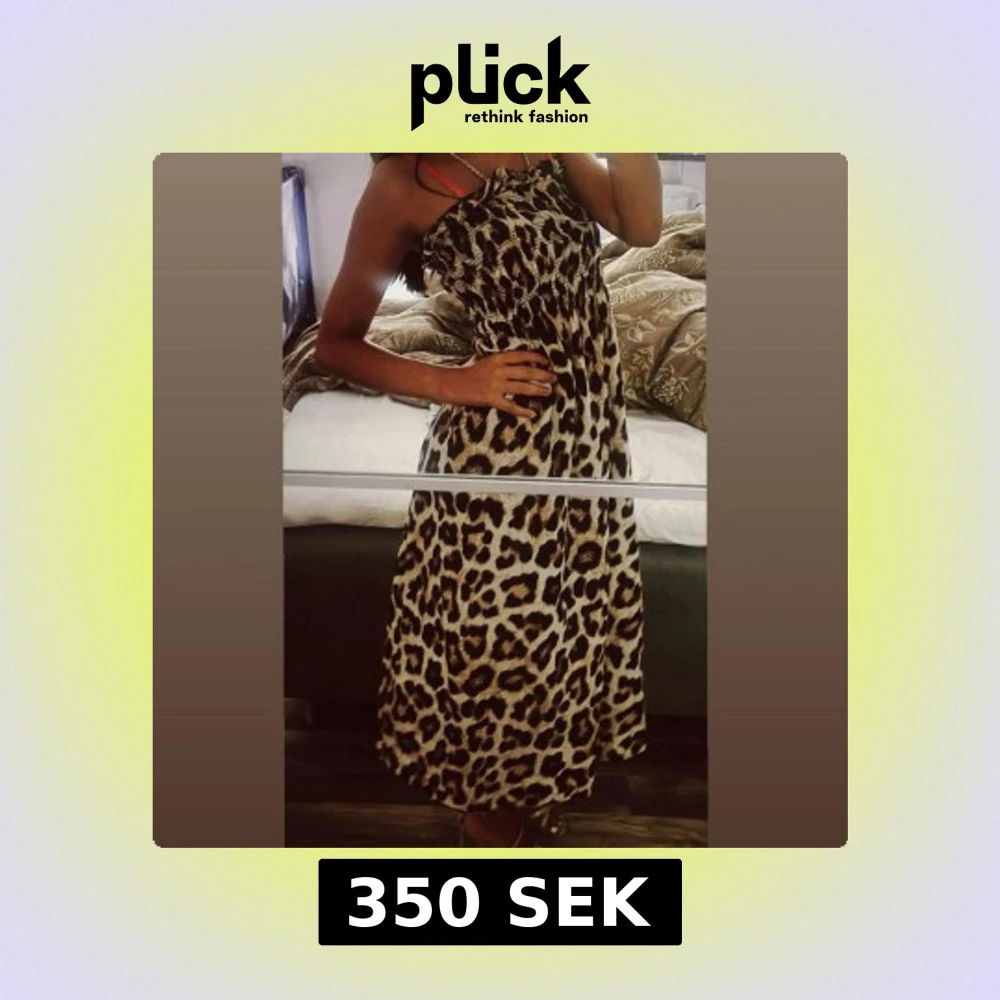 Säljer en snygg långklänning med leopardmönster och smockad överdel. Klänningen har tunna axelband och en loose passform som ger en avslappnad vibe. Perfekt för dig som vill sticka ut med ett djurmönster. Färgerna går i beige, svart och brunt.
