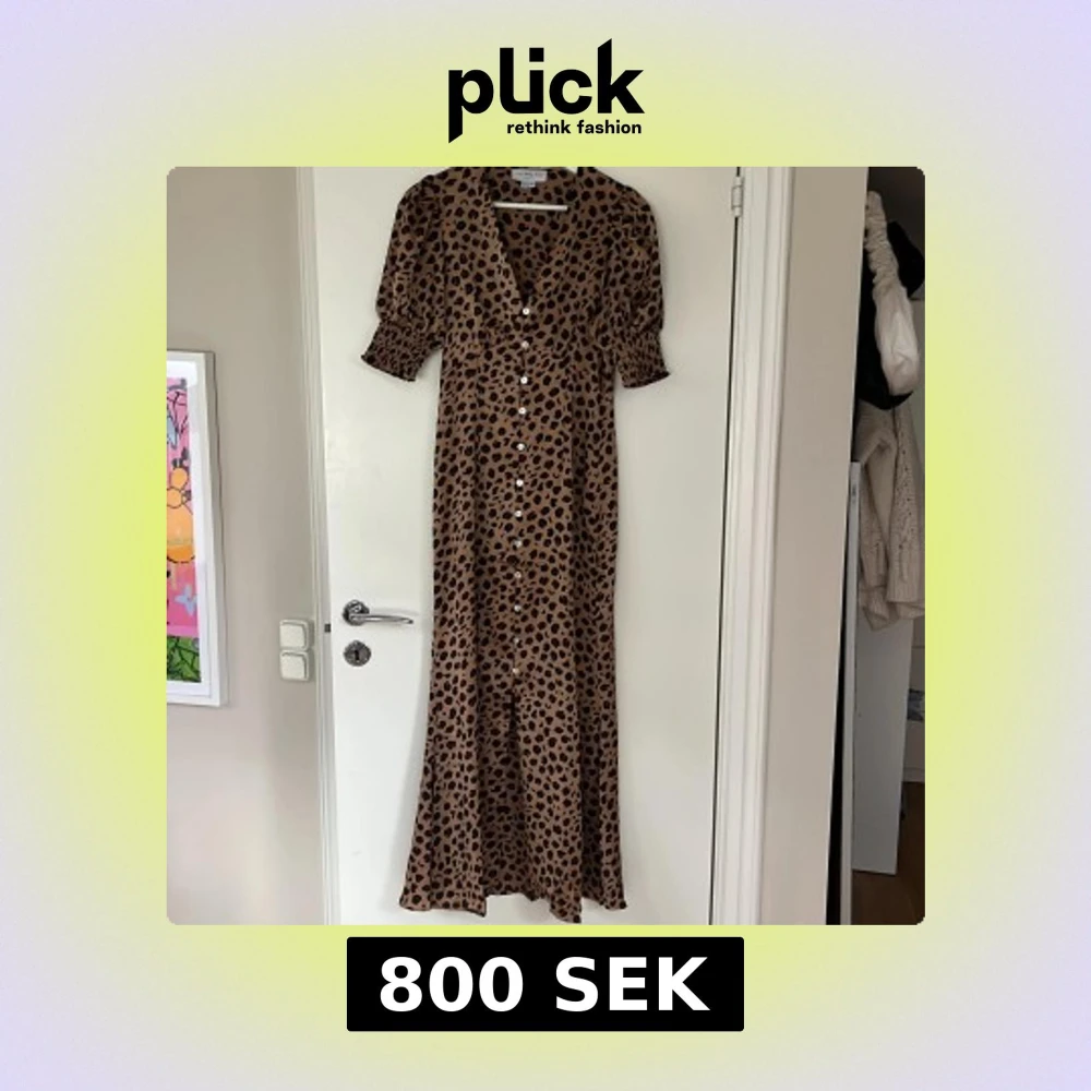 Snygg långklänning från never fully dressed, påminner om en Adoore klänning med leopardmönster i brunt och svart. Klänningen har v-ringning, puffiga korta ärmar och knappar framtill. Den är använd 3/4 ggr så i väldigt fint skick. Nypris 1200kr