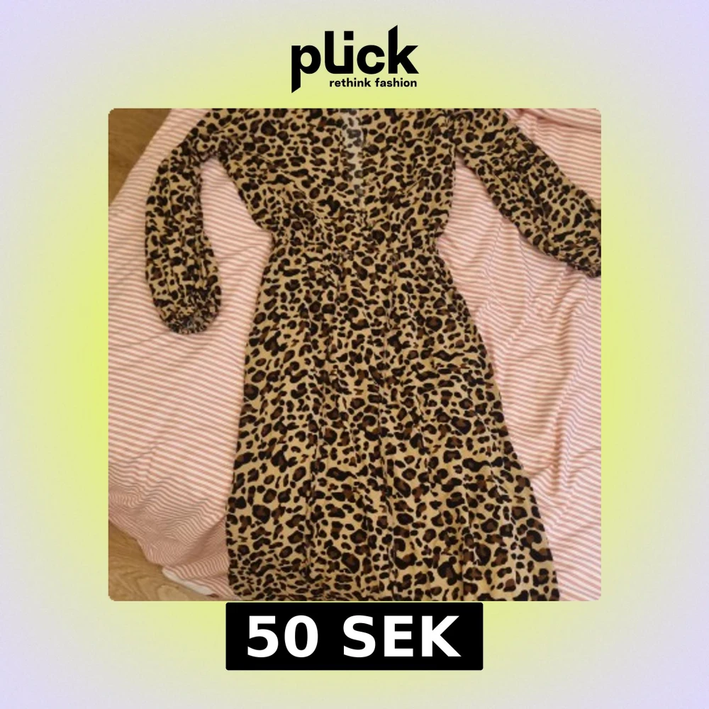 Snygg långklänning med leopardmönster och v-ringad hals. Klänningen har långa ärmar med resår vid handlederna och markerad midja. Perfekt för dig som vill sticka ut med ett djurmönster.