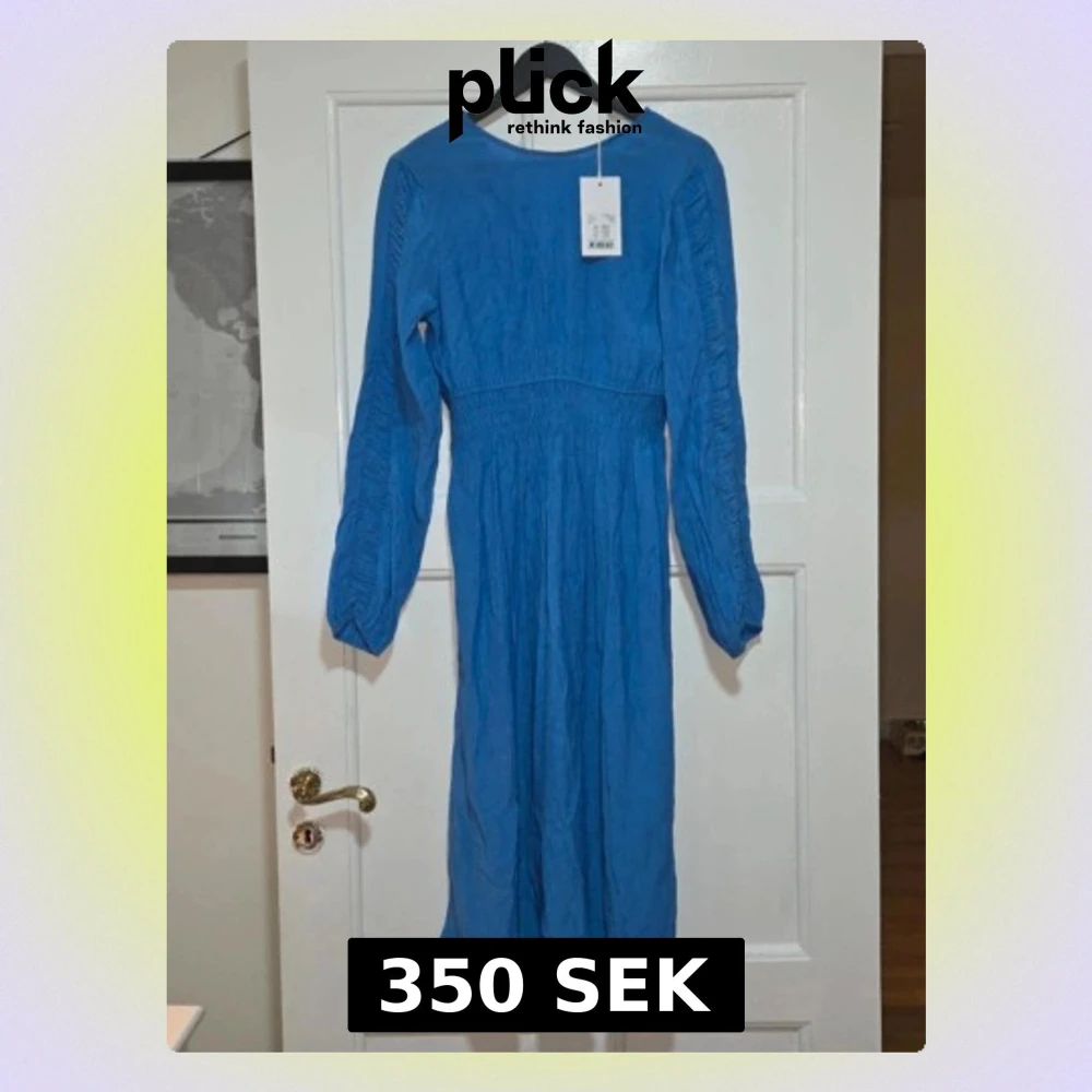 Helt ny och oanvänd Levate Room midiklänning med en vacker, klarblå färg och krinklad (skrynklig) struktur. Perfekt som sommar eller semesterklänning! Design & Detaljer: •Krinklad Viscose: Mjukt, tunt och luftigt tyg (LR-ASTA-3). •V-ringning med knytband vid halsen. Smock/Resår vid midjan som ger en fin och •figurnära passform. •Lång ärm med diskreta rynkningar/veck vid axlarna. •Märke: Levaté Room •Storlek: Small (S) •Färg: Ljusblå/Klarblå (L227) •Nypris: 1.199 kr (SEK) •Skick: Helt ny med la