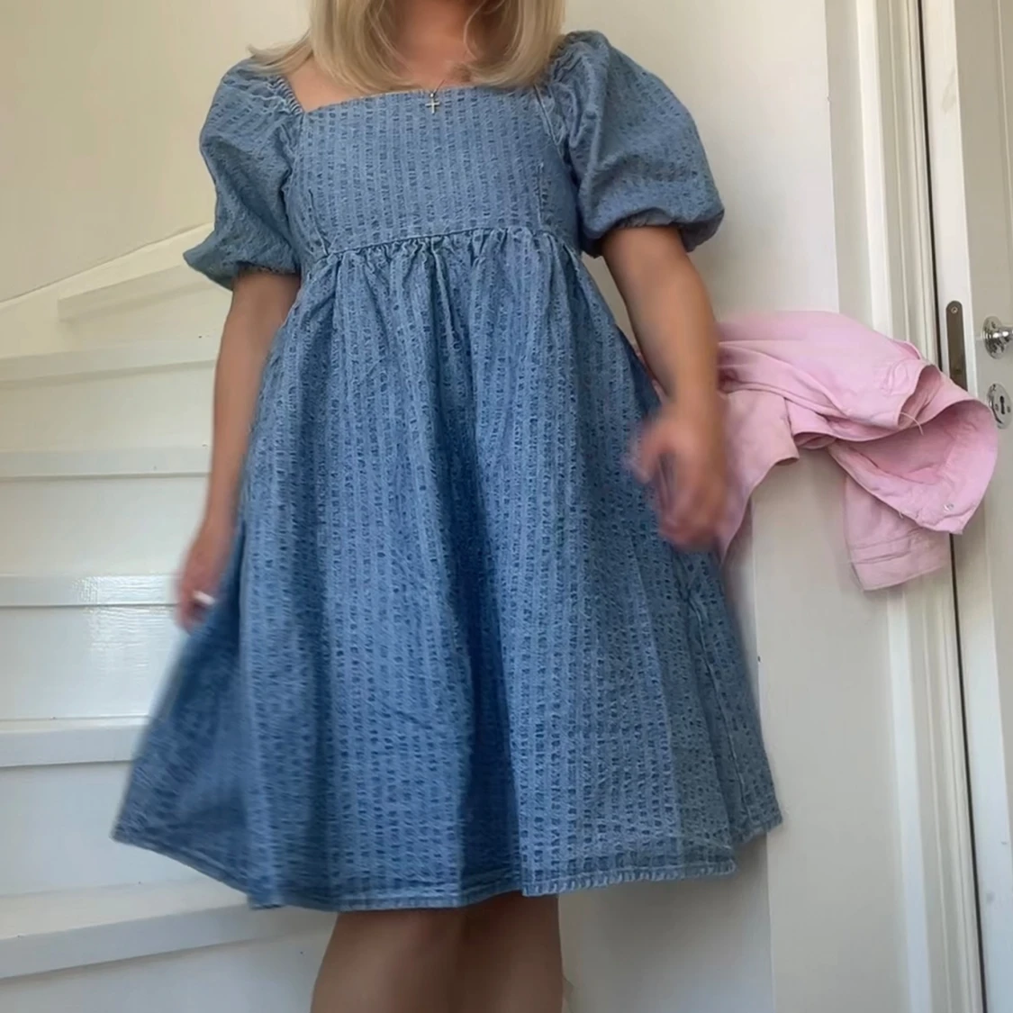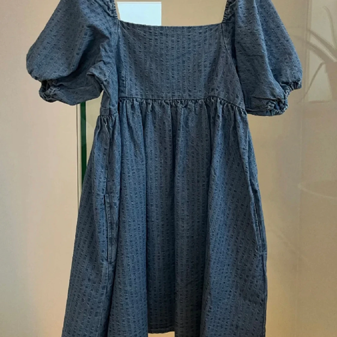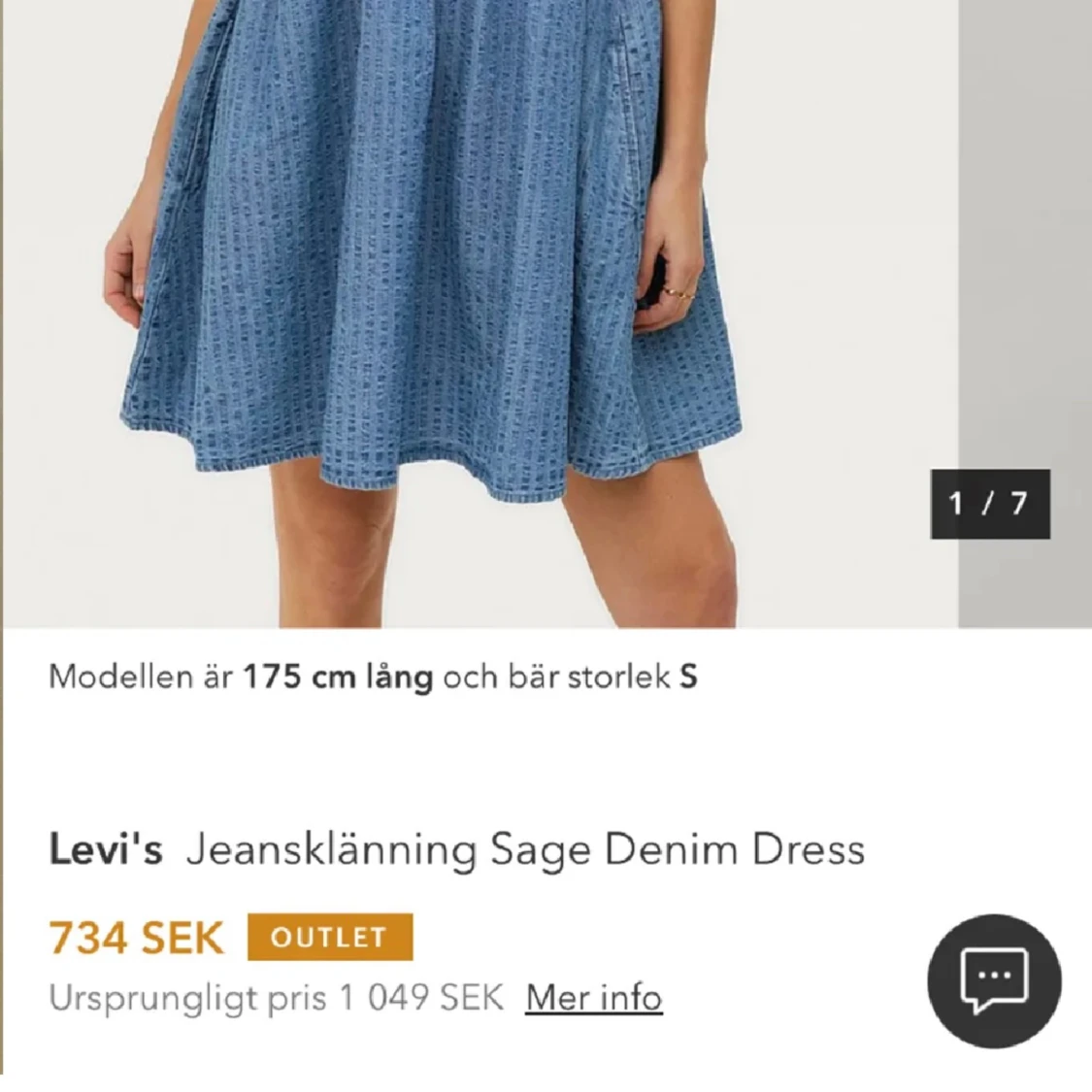 Sååå söt jeans klänning från Levi’s, perfekt för sommaren! Använd 1 gång, säljer då den är lite lång på mig, (jag är 152cm), den är som ny, köpt för 1000kr i Levis butik.
