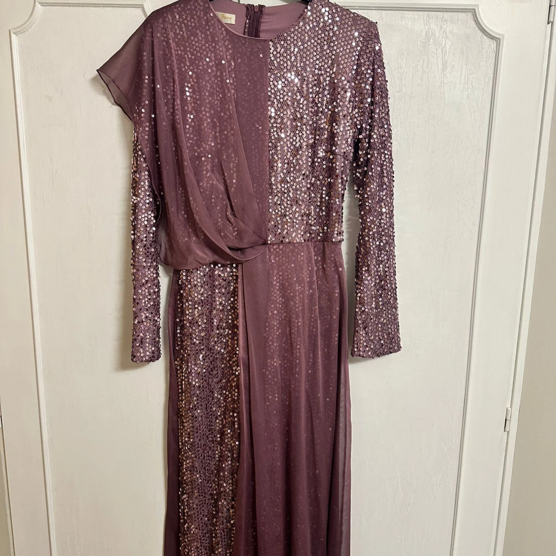 Säljer denna fina lila långärmade festjumpsuit med glittrande paljetter. Den har bara används 1 gång och är i mycket bra skick.