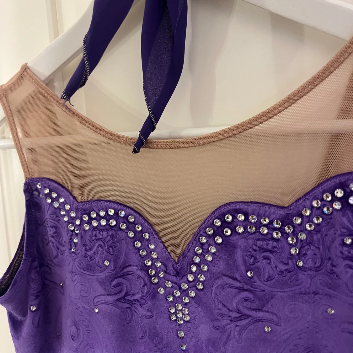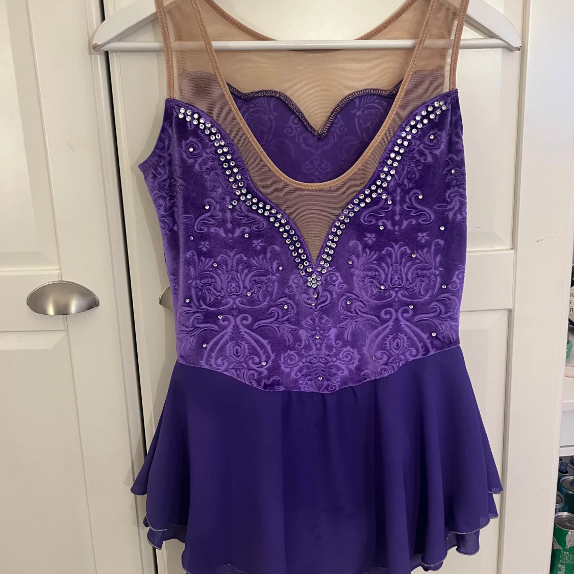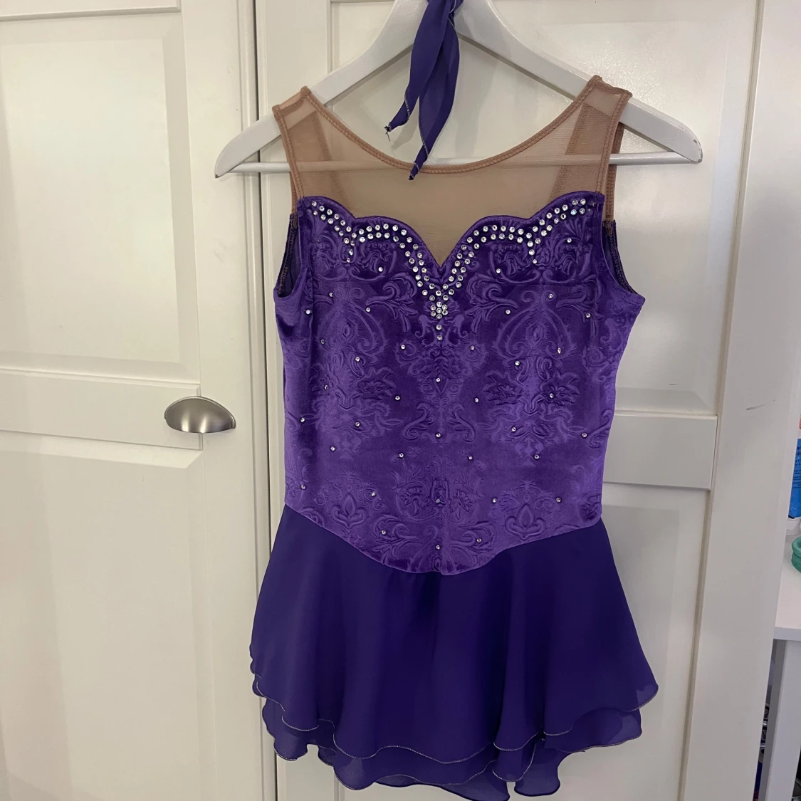 Lila konståknings klänning i storlek s/xs. Har använts på några tävlingar men fortfarande i väldigt bra skick