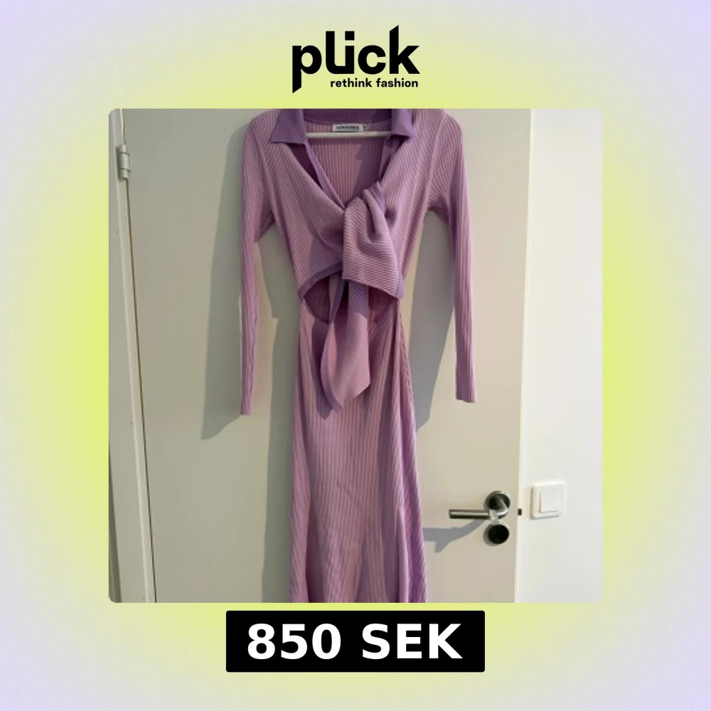Superfin lila långklänning från Adoore med ribbad struktur, lång ärm och snygg krage. Klänningen har en stor knyt-detalj framtill och cut out vid midjan som ger en trendig look. Perfekt för dig som vill sticka ut med en cool och modern stil.