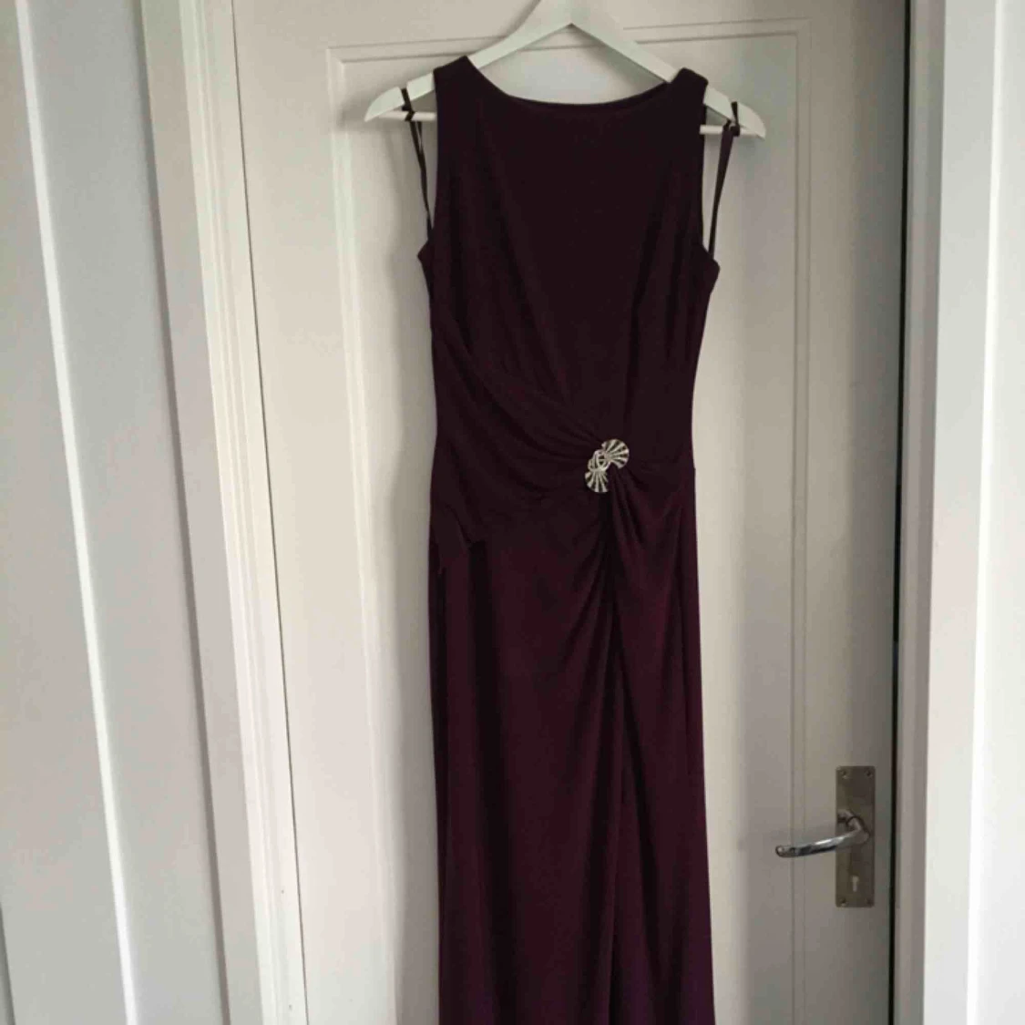 Mycket fin lila långklänning från Ralph Lauren, endast använd en gång. Vacker dekorativt smycke på klänningen och slits nertill. Passar storlek 36/38. Ord.pris 2295 kr säljs nu för 1300 kr