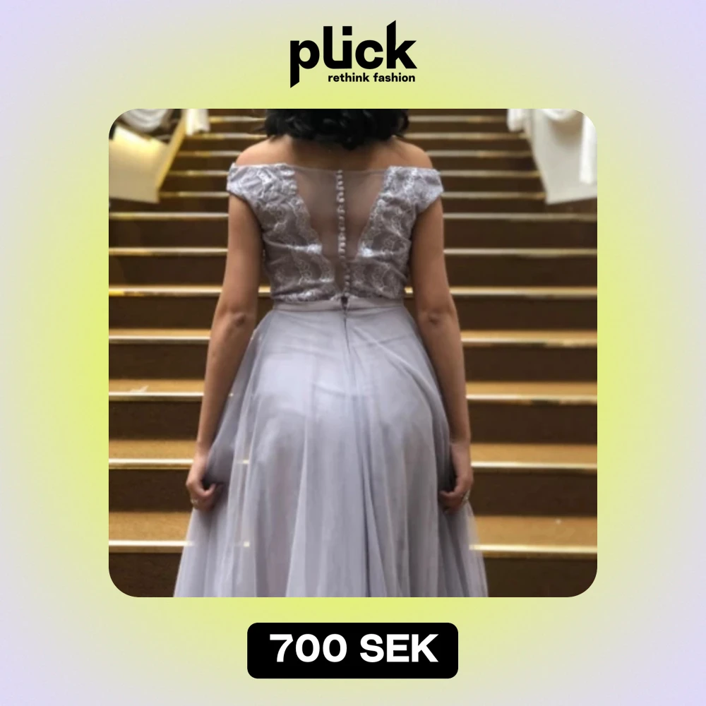 En jättefin lilasilvrig klänning med otroligt eleganta detaljer i storlek 36. Har använts en gång men letar nu ny ägare då den har blivit för liten på mig. Den når ner till marken för mig när jag har på mig 3 cm klackar (jag är 170cm).