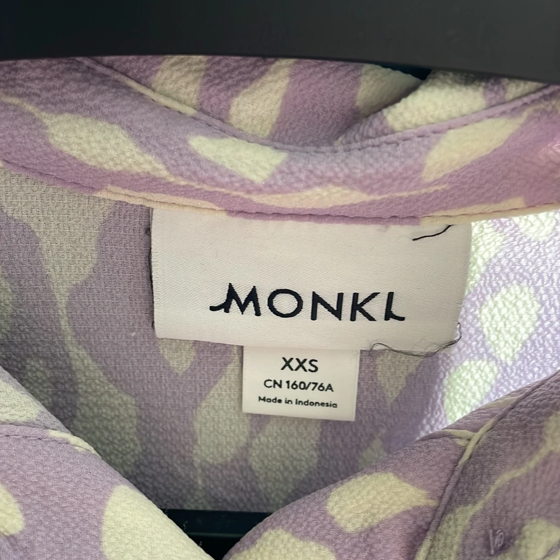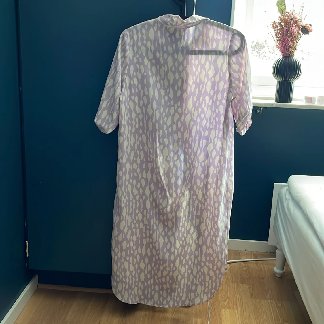 Säljer en stilren ljuslila klänning från Monki med ett unikt mönster. Klänningen har trekvartsärmar och en klassisk krage. Perfekt för en avslappnad och trendig look. Säljs inte längre på hemsidan och pris kan diskuteras Använd 1 gång💜