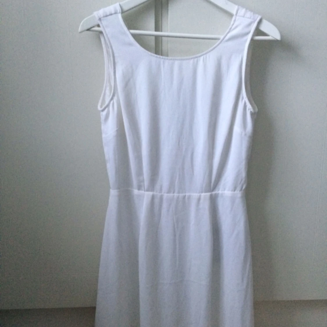 Jättefin klänning med spets detaljer i ryggen, slutar ovanför knäna! Står storlek 36 men passar bättre på storlek 38. Helt oanvänd. Köpte den på en jättefin klänningsbutik i Sthlm men kommer tyvärr inte ihåg vad den heter (privatägd butik).. köparen står för frakten.
