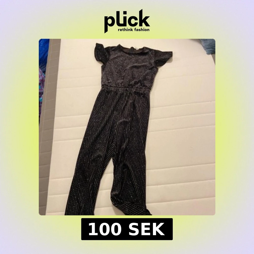 Supersnygg svart jumpsuit från Lindex med glittriga ränder och korta ärmar. Den har resår i midjan och dragkedja bak för enkel påklädning. Perfekt för dig som vill sticka ut lite extra med en cool look! Även perfekt för nyår!