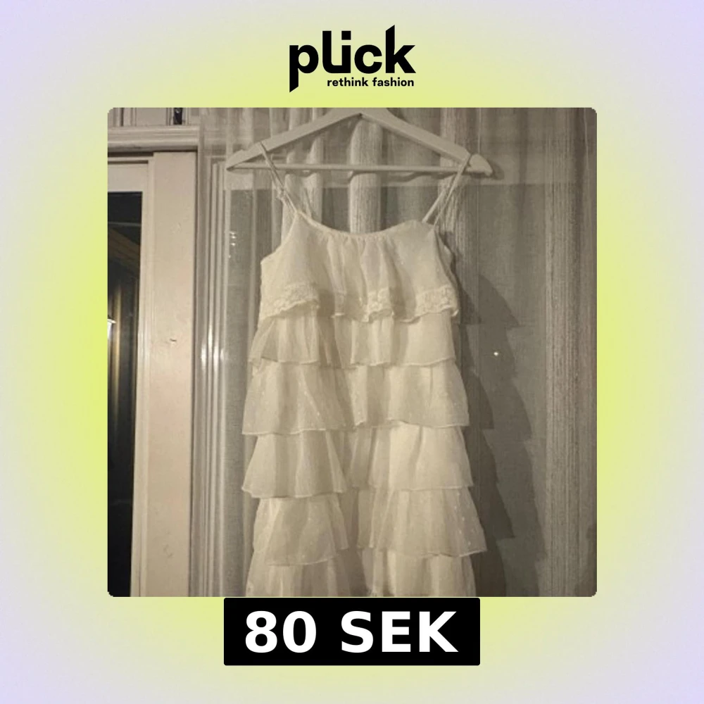 Supersöt vit kortklänning från Lindex med tunna axelband och flera lager volanger. Klänningen har dragkedja i ryggen och är tillverkad i ett lätt, flowy material som känns luftigt. Perfekt för sommarens alla tillfällen när du vill känna dig extra fin. En liten fläck under ena volangen