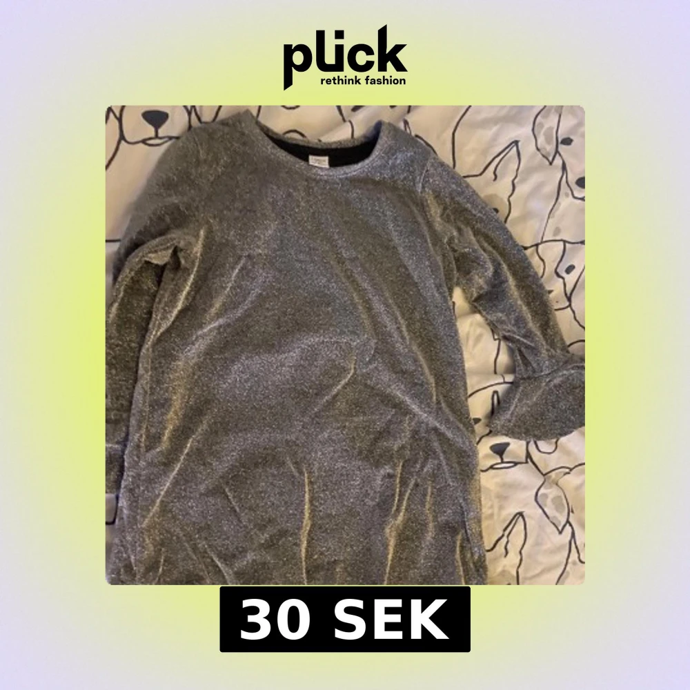 Säljer en glittrig klänning med långa ärmar. Perfekt för att lysa upp vilken outfit som helst. Klänning har en rund halsringning och är i ett mjukt material som känns skönt mot huden. Passar bra till både vardag och festliga tillfällen.