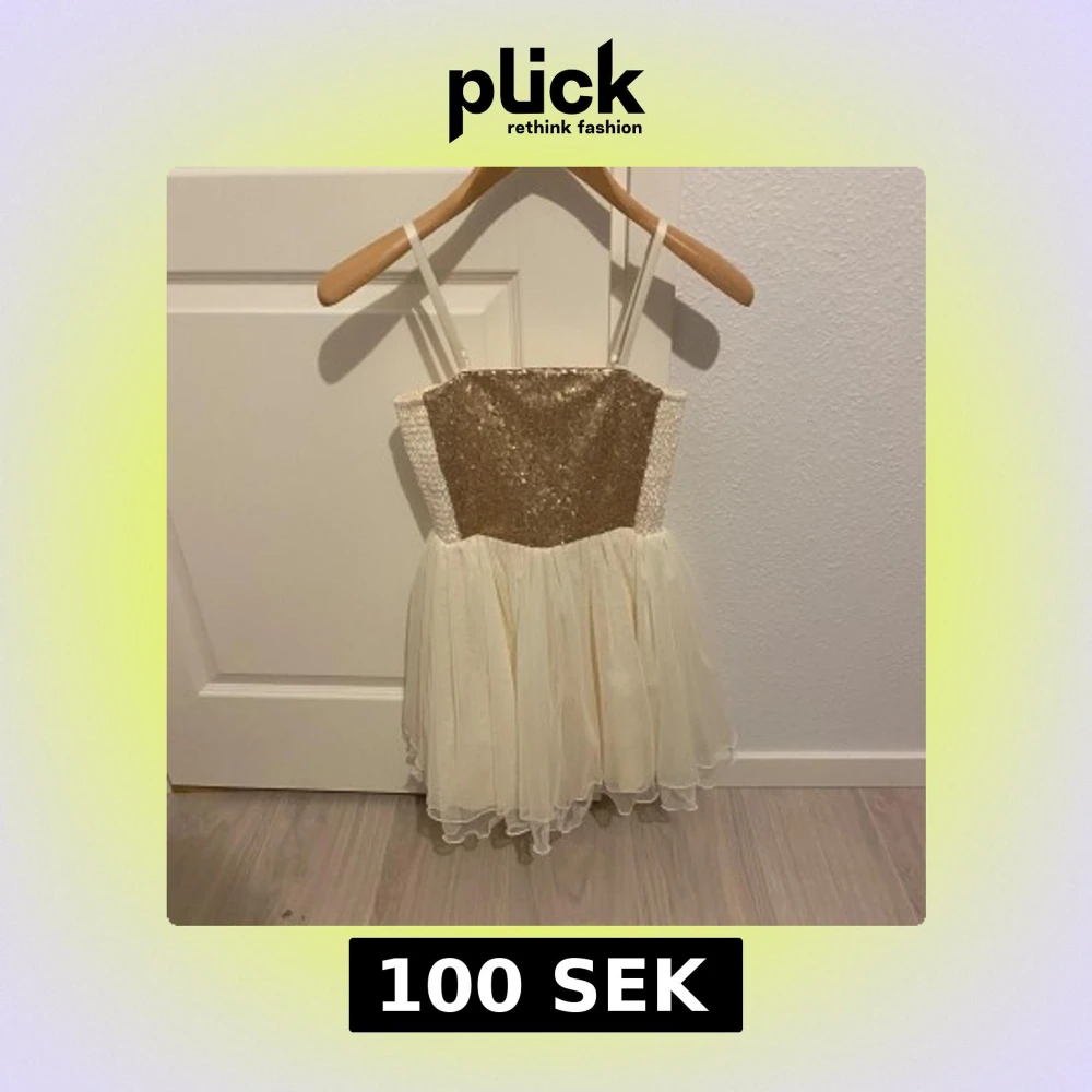 Säljer en söt klänning från Lindex med glittrig överdel och volangkjol i ljus färg. Klänningen har smala axelband och är perfekt för festliga tillfällen. Den glittriga delen ger en extra touch av glamour.