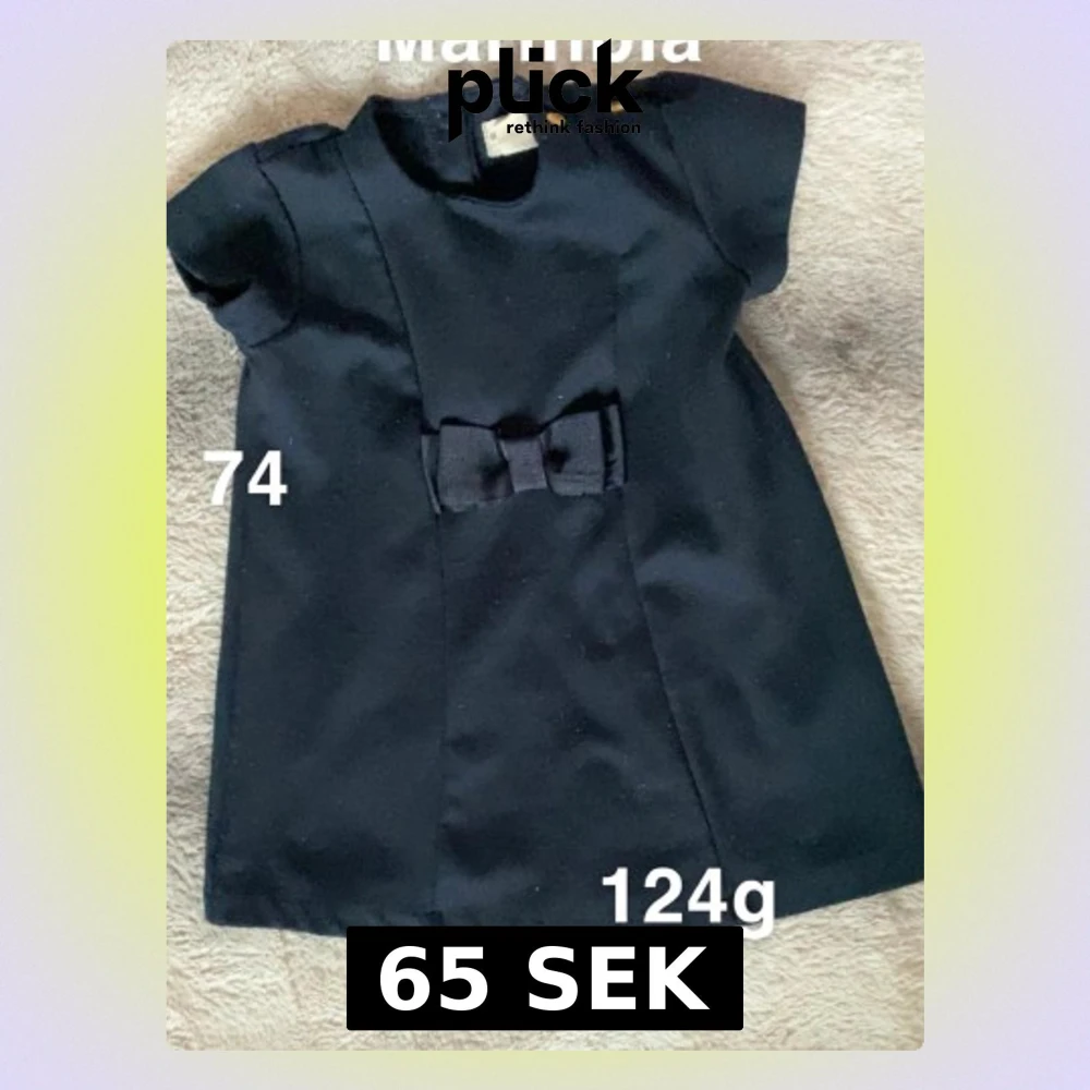 Supersöt mörkblå klänning i kort modell med en fin rosett framtill. Klänningen har korta ärmar och knappar vid axeln för enkel påklädning. Perfekt för dig som gillar stilrena och klassiska plagg till de små.🌸 Fint använt skick. Storlek 74