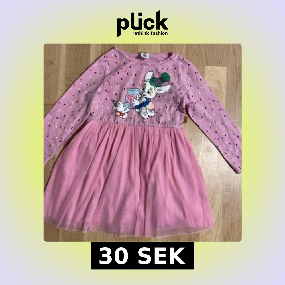 Supergullig rosa klänning från Lindex med Bamse-tryck framtill och färgglada prickar på överdelen. Kjolen är i mjukt tylltyg och klänningen har långa ärmar. Perfekt för dig som gillar söta och lekfulla plagg!