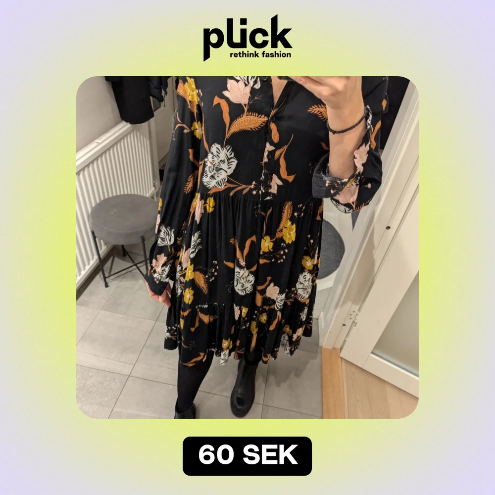 Säljer en superfin blommig klänning från Lindex i storlek XS. Den är svart med färgglada blommor i rosa, gult och vitt. Klänningen har trekvartsärmar och är gjord i 100% viskos, vilket gör den både bekväm och luftig.