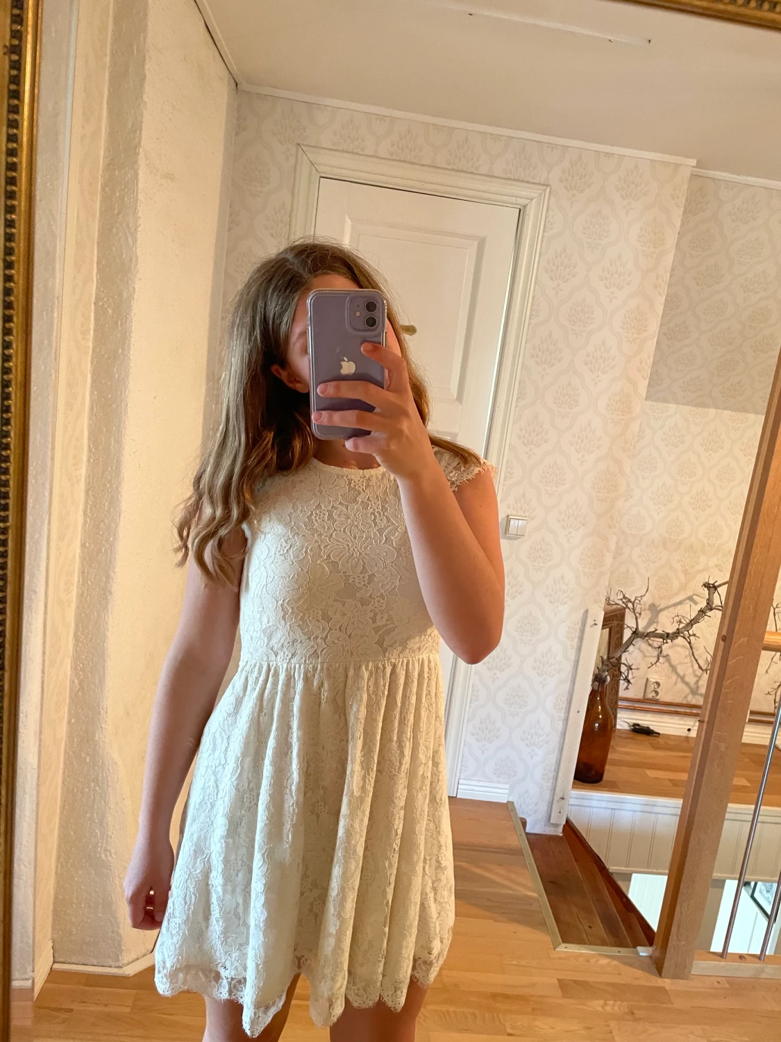 Jätte fin vit klänning från Lindex. Storlek 146 men passar S/xs.