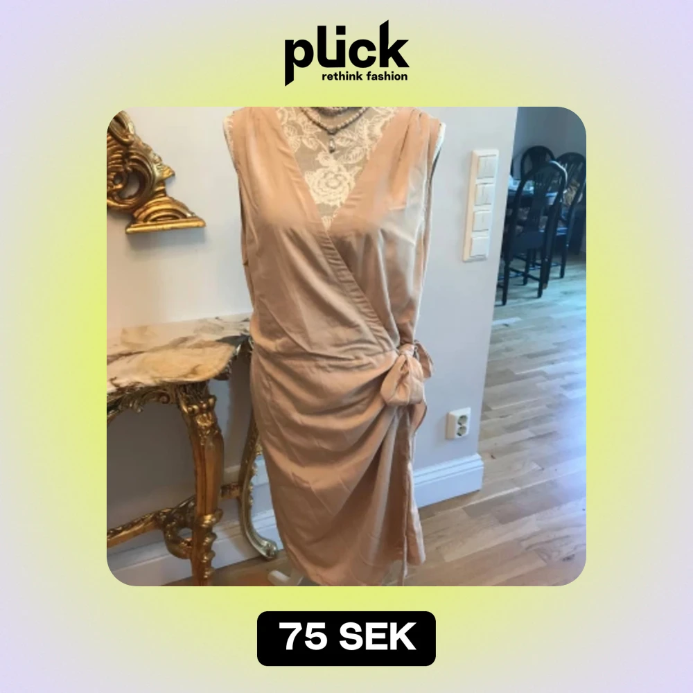 Fint och bekväm omlottklänning från Lindex str L i ljus beige färg. Material 79% Modal 21 polyester.