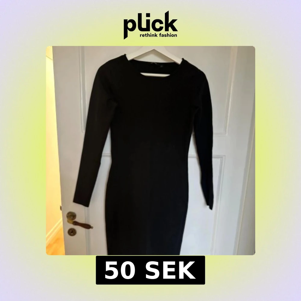 En stilren svart klänning från Lindex i storlek S. Klänningen har lång ärm, rund halsringning och en figurnära passform som ger en snygg siluett. Perfekt för dig som gillar enkel och klassisk stil.