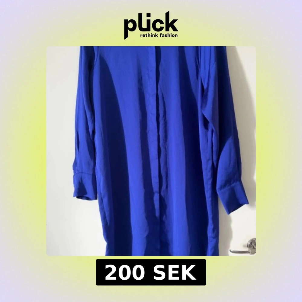 Snygg blå skjortklänning med klassisk krage och långa ärmar. Klänningen har en rak passform och knappar längs framsidan som är dolda för en clean look. Materialet känns lätt och har en diskret struktur. Perfekt för dig som gillar stilrena och enkla plagg.nypris 499