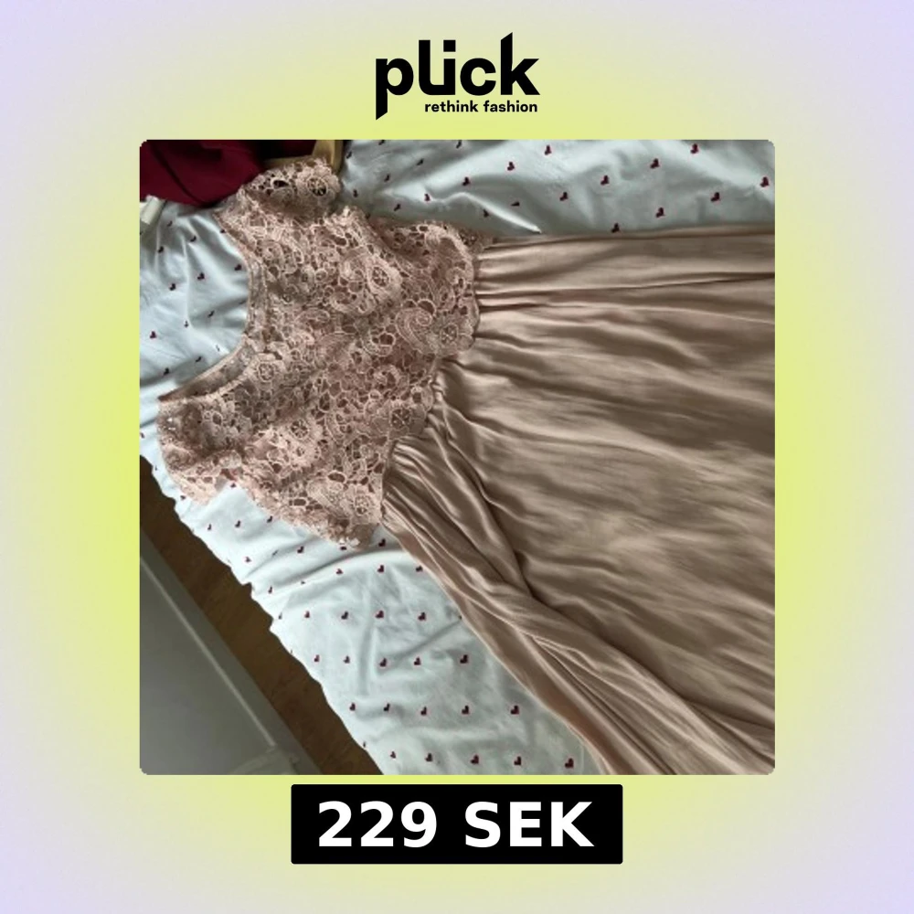Superfin ljus rosa långklänning med överdel i vacker spets och underdel i mjukt, flowy tyg. Klänningen har ärmlös design och rund halsringning, perfekt för sommarens speciella tillfällen. Spetsen ger en romantisk vibe och kjolen faller snyggt.