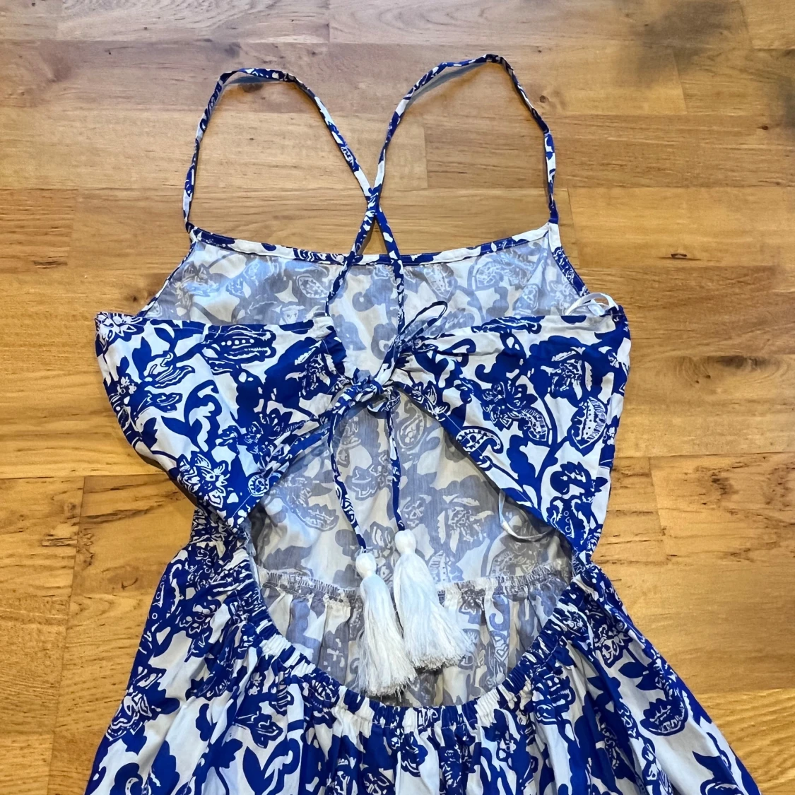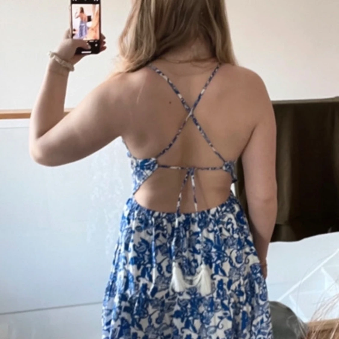 Säljer en somrig långklänning Klänningen har smala axelband och en fin detalj med knytning i ryggen. Hör av dig vid frågor❤️