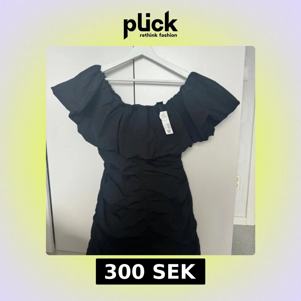 Supersnygg svart kortklänning från Lindex med offshoulder modell och volang ärmar. Perfekt till festliga tillfällen. Hör av dig vid fler frågor😊