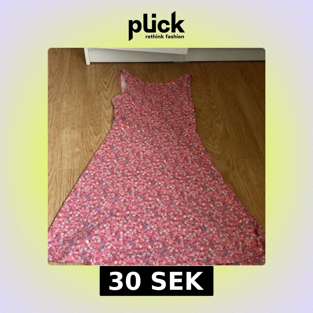 Supersöt rosa klänning med blommigt mönster och ärmlös design. Klänningen har en kort längd och en snygg öppen rygg med korsade band. Perfekt för sommarens alla tillfällen, lätt och skön att bära. Färgglada detaljer i blått, gult och vitt ger extra liv till looken.