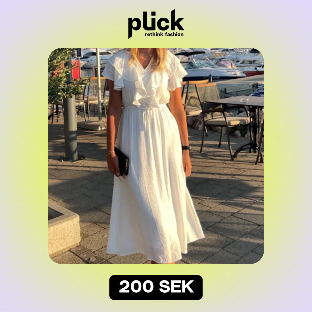 Älskar denna klänningen men har aldrig fått användning av den förutom en gång utomlands. Den är köpt utomlands och går ner till smalbenen på mig som är 170. Är du kortare blir den längre och tvärt om 🥰Köpt utomlands