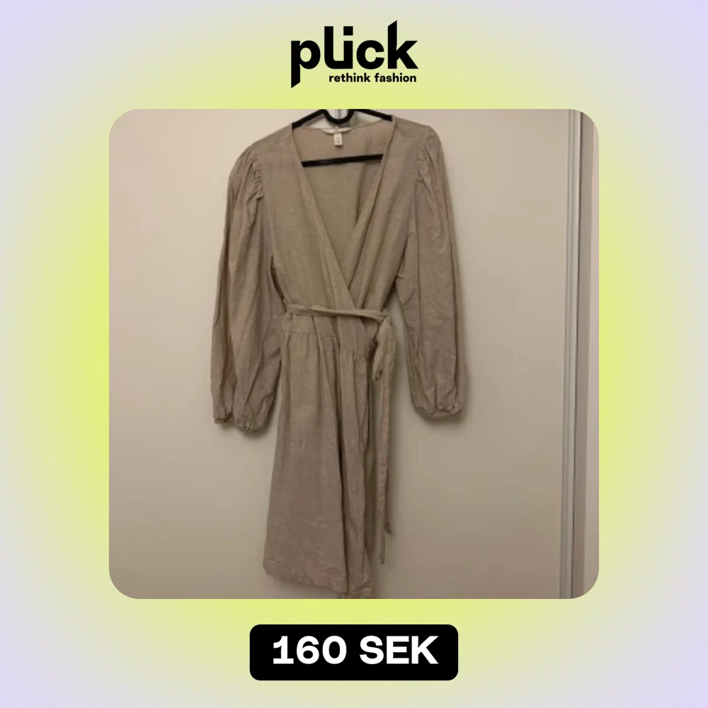 Linneomlottklänning, köpt på H&M. Storlek S, använd vid ett tillfälle! Som ny! 160kr, köparen står för frakten🤎🫶🏼