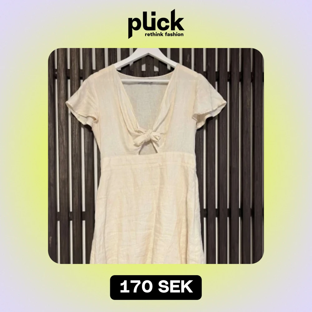 Säljer den här fina linneklänningen. Använd fåtal gånger, bra skick. Storlek 36, knytbar vid brösten och har dragkedja på sidan.