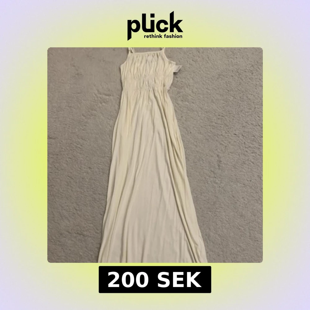 Supersöt ljus långklänning från Bubbleroom med smala axelband och rynkade detaljer över bröstet och midjan. Klänningen är i mjukt material och har en flowy siluett som ger en chill och feminin vibe. Perfekt för varma dagar och somriga tillfällen.