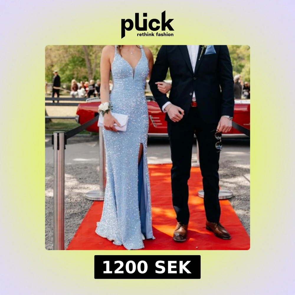 Säljer nu min glittriga, ljusblåa balklänning. I fint skick, med snörning i ryggen🩵