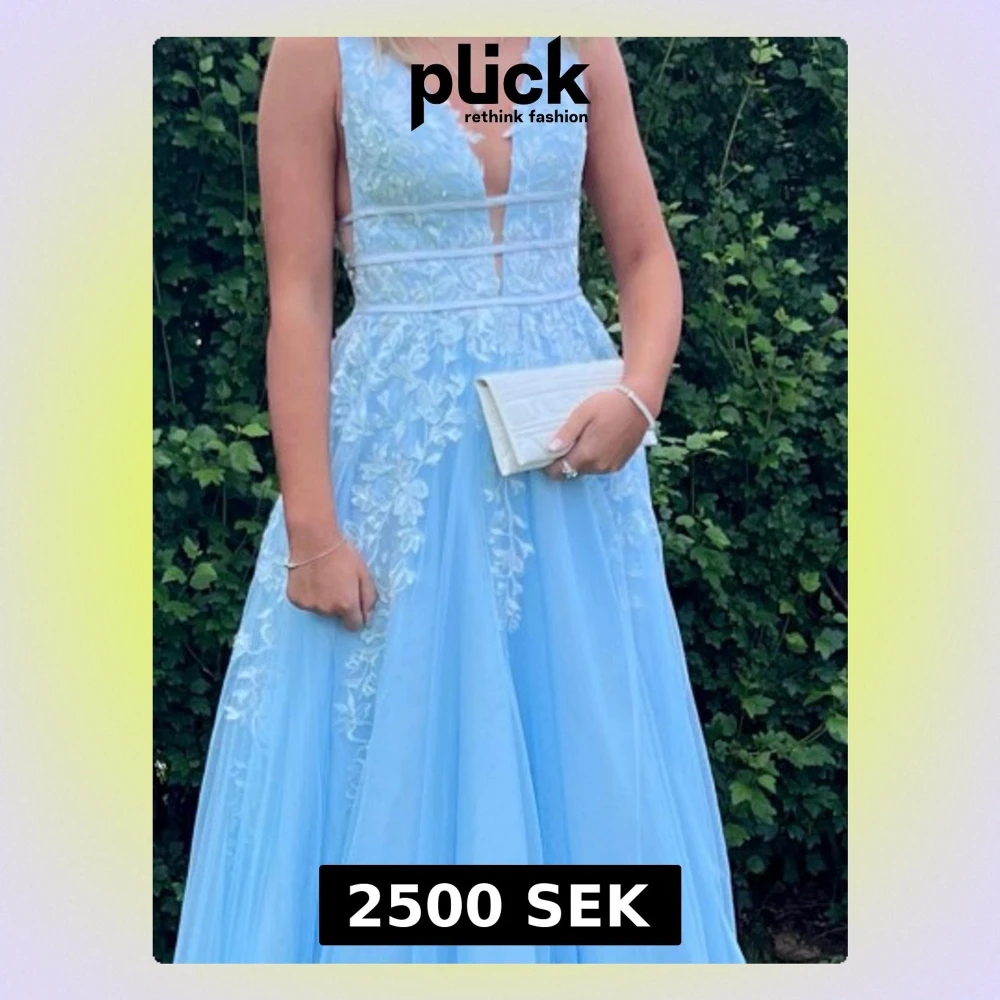 Magisk ljusblå långklänning med vackra broderade spetsdetaljer och blommigt mönster. Perfekt för bal eller student! Köpt för 3000kr använd 2 gånger!😊 pris kan diskuteras
