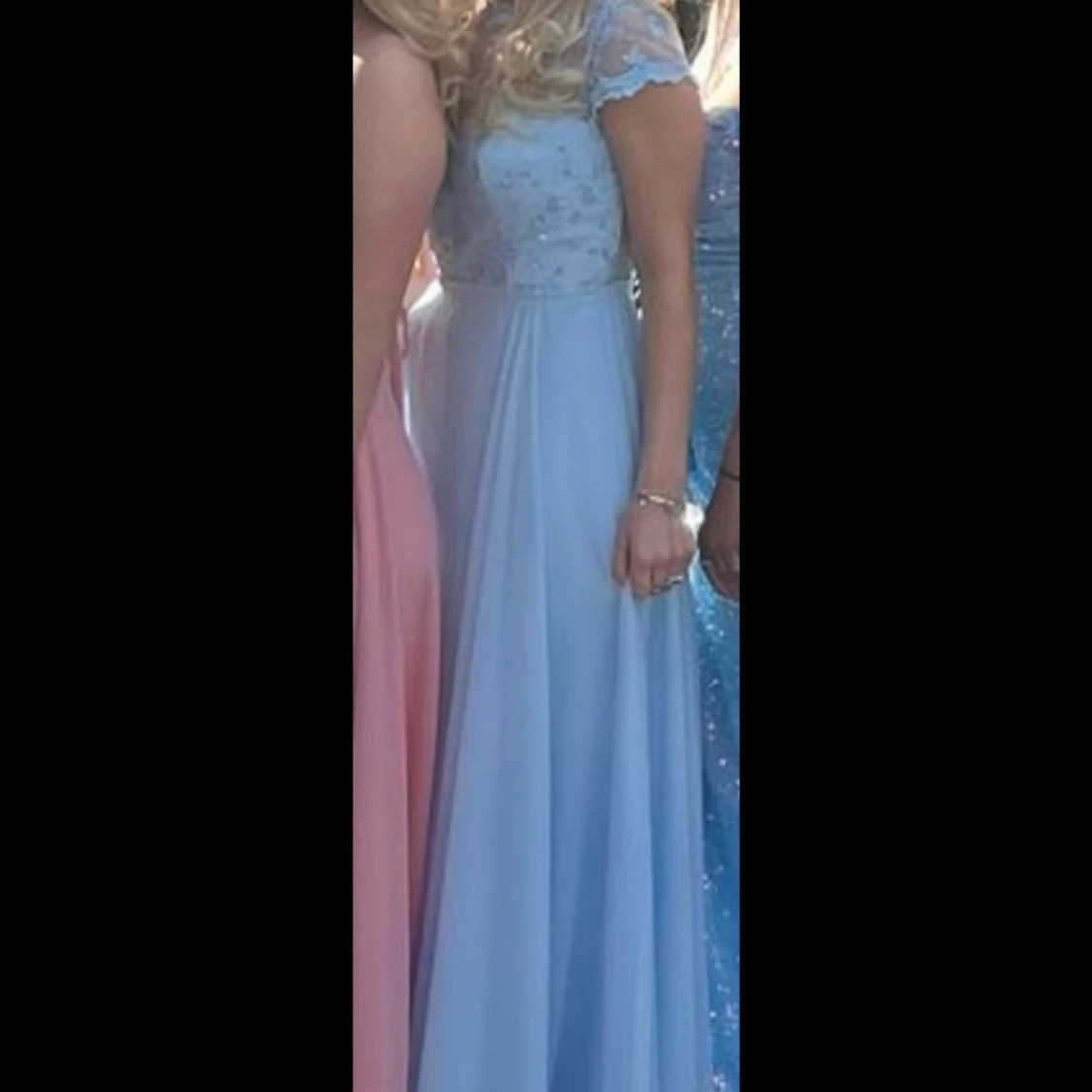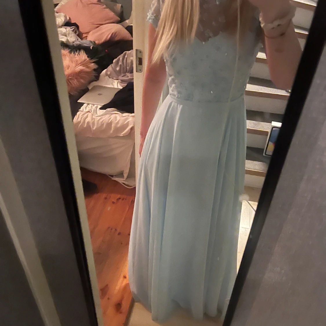 Min balklänning i 9:an Jag är 169cm lång och den va bra längd för mig Älskar färgen och den är väldigt bekväm💙 Använd en gång och handtvättad efter