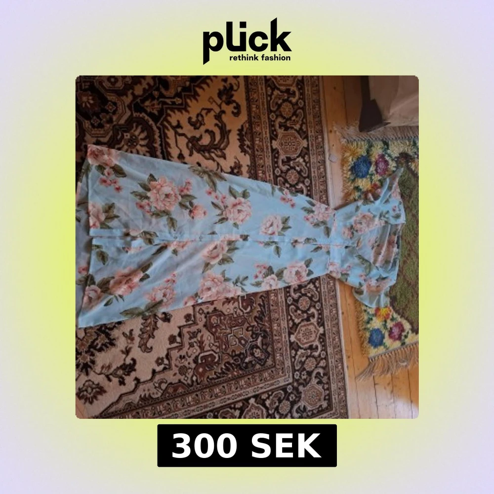 Ljusblå blommig långklänning