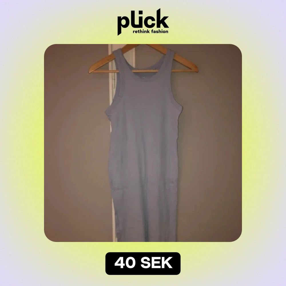 Ljusblå, chill klänning ifrån Lager 157. Storlek M och inte så tajt utan mer chill och laidback. Väldigt skön att ha på sommaren när det är varmt då den är så luftig. Inte tecken på användning!