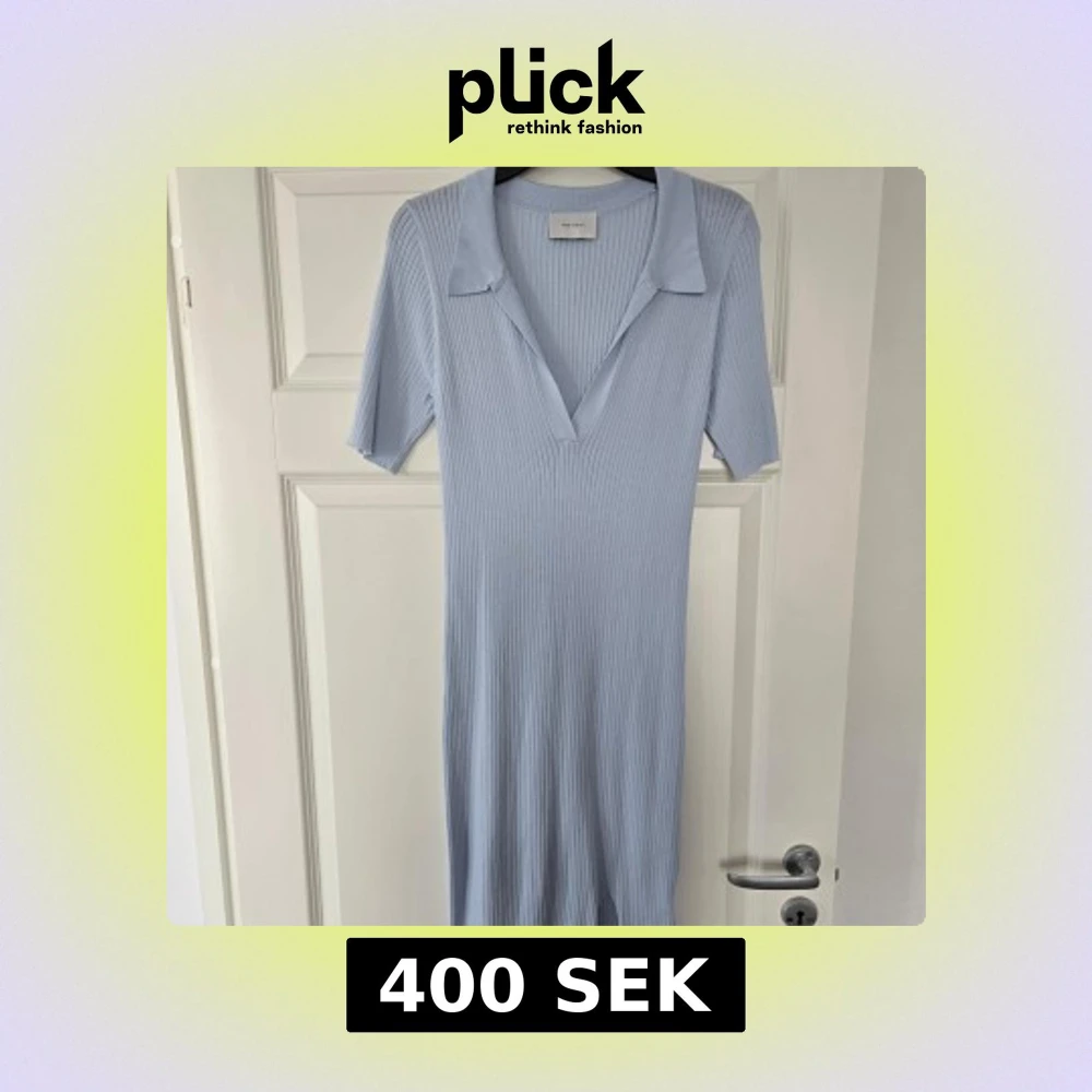 Säljer en ljusblå ribbad klänning från Neo Noir med krage och v-ringning. Klänningen har korta ärmar och är tillverkad i ett stretchigt material som ger en snygg passform. Perfekt för vår och sommar!