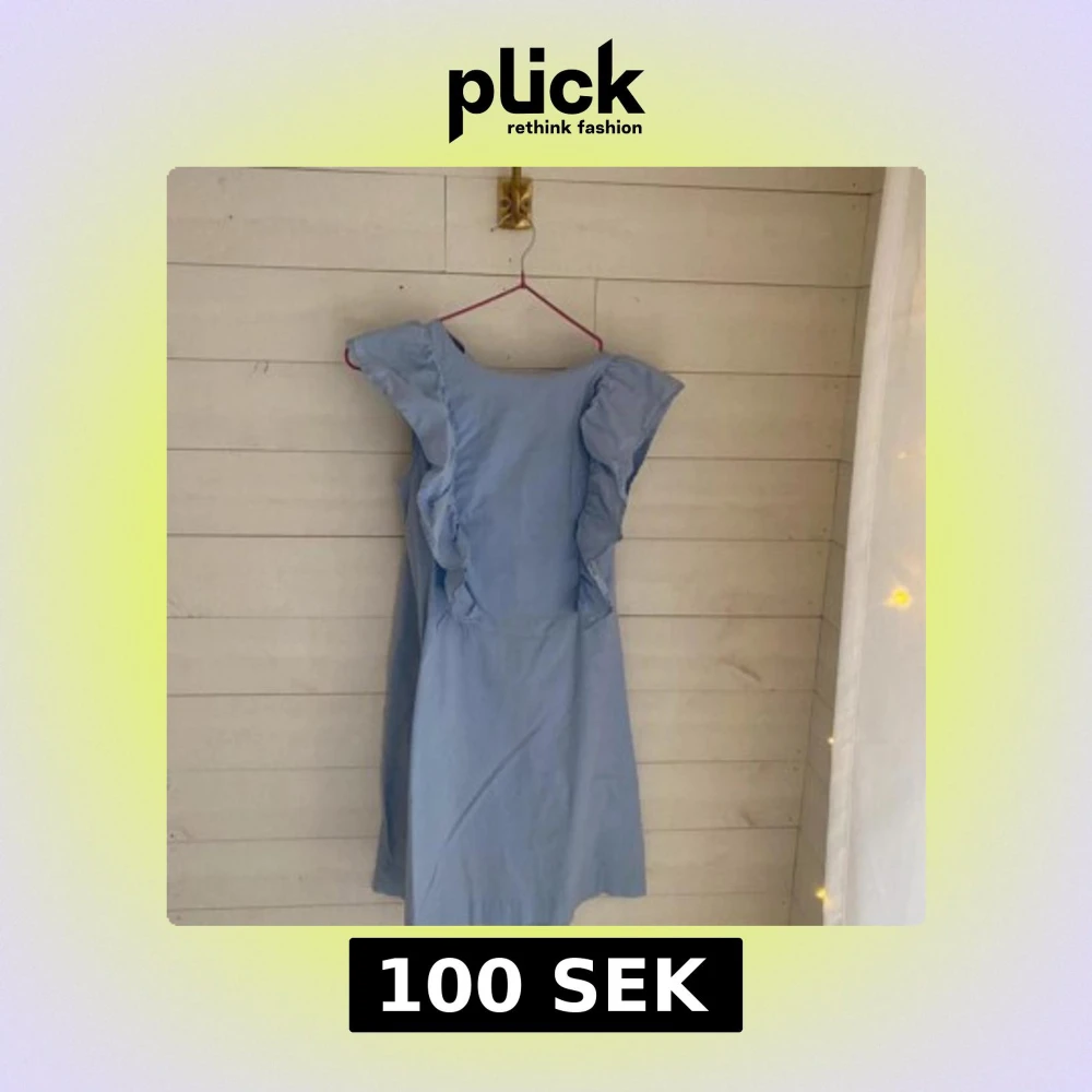 Supersöt ljusblå klänning med volangdetaljer längs axlarna och en öppen rygg med knytband. Klänningen är kort och har en loose passform, perfekt för varma dagar. Tillverkad i mjuk bomull som känns skön mot huden.