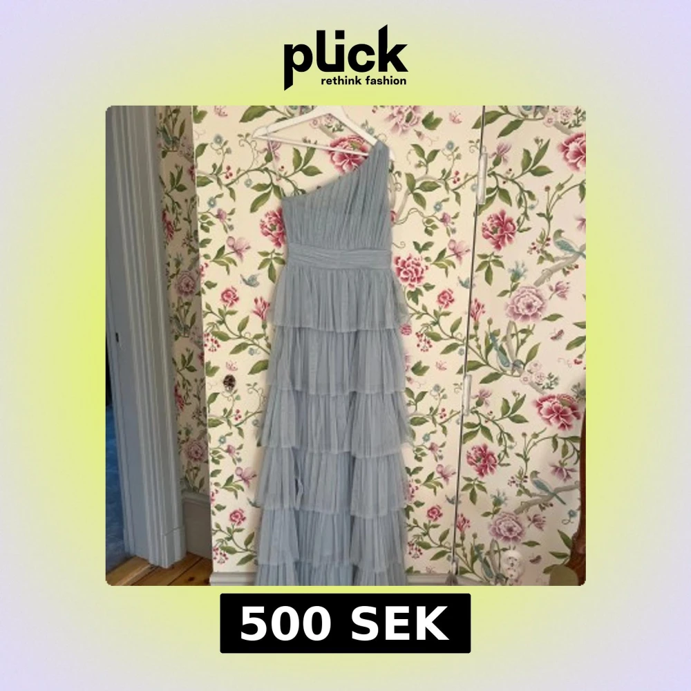 Säljer en drömmig ljusblå långklänning från BEAUUT i storlek 36. Klänningen har ett lager-på-lager-tyll, oneshoulder och markerad midja. Perfekt balklänning. Jag är 173 cm lång och kan ha den med låga klackar och då är den golvlång.