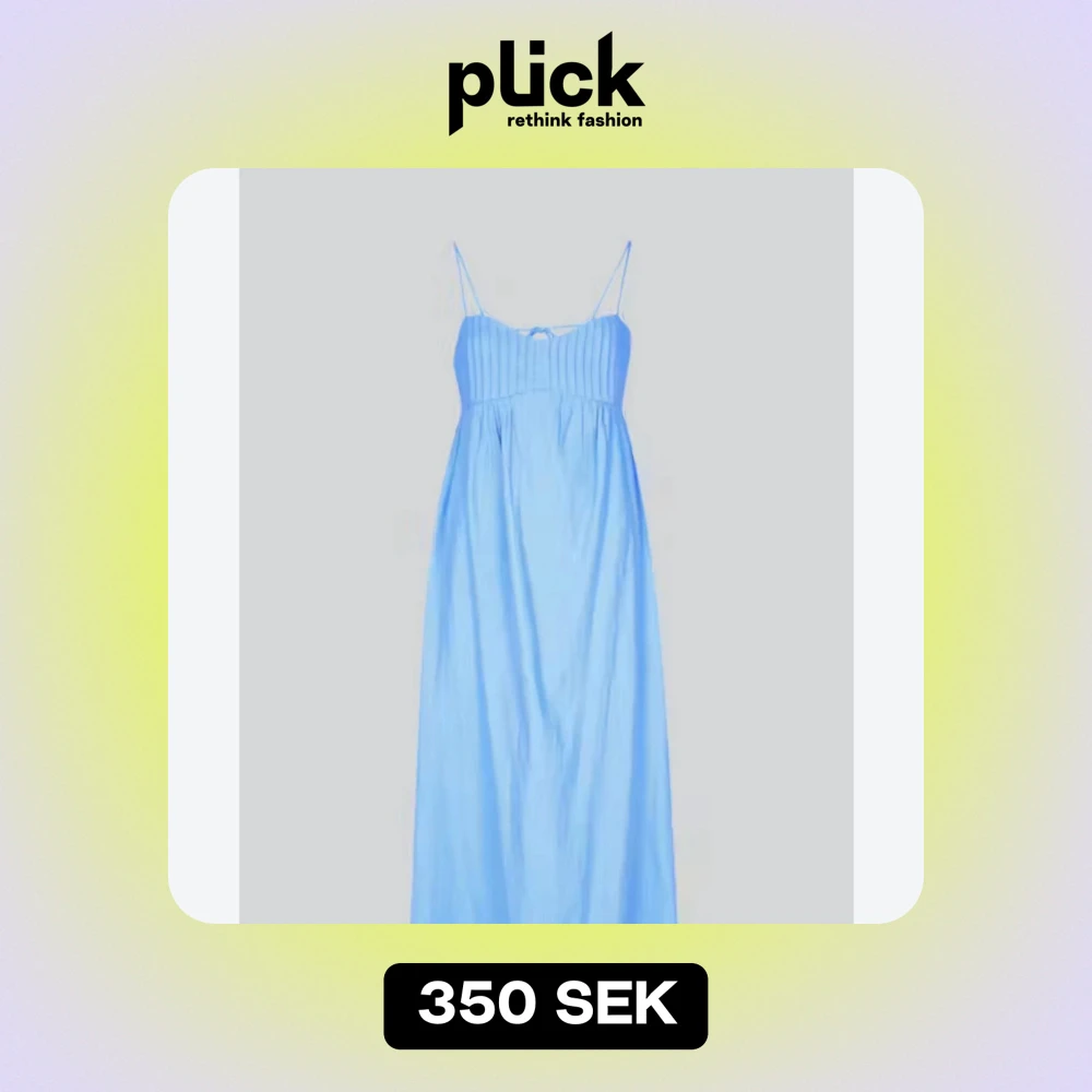 Säljer min helt oanvända jättefina klänning då jag haft den en hel sommar utan att den kom till användning. Den kommer är superfin i ryggen där man knyter den. Skulle säga att den är något ljusare i verkligheten än på bilden
