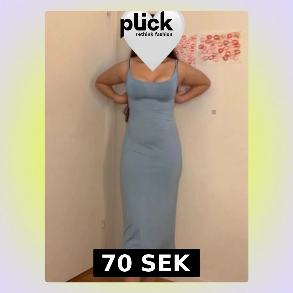 Snygg ljusblå långklänning med smala axelband och figurnära passform. Klänningen är ärmlös och har en enkel, stilren design som passar perfekt till sommaren. Mjuk och stretchig känsla.
