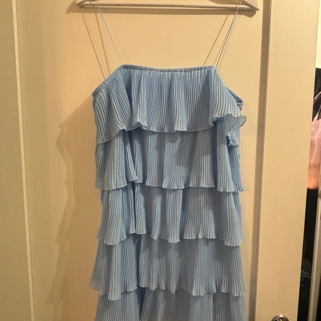 Ljusblå volangklänning