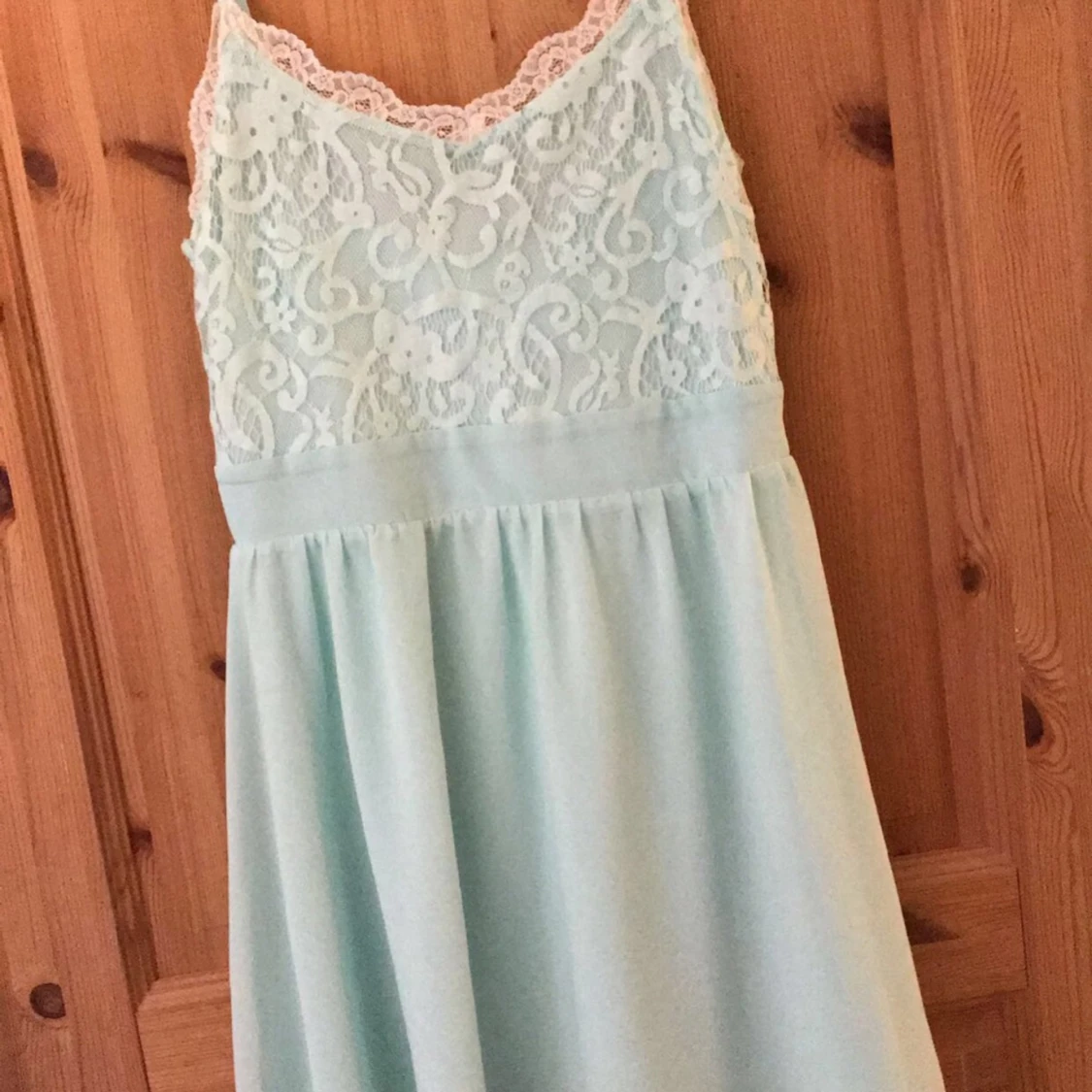 Säljer en söt ljusblå klänning med spets. Använt några gånger. Nu är den för liten.