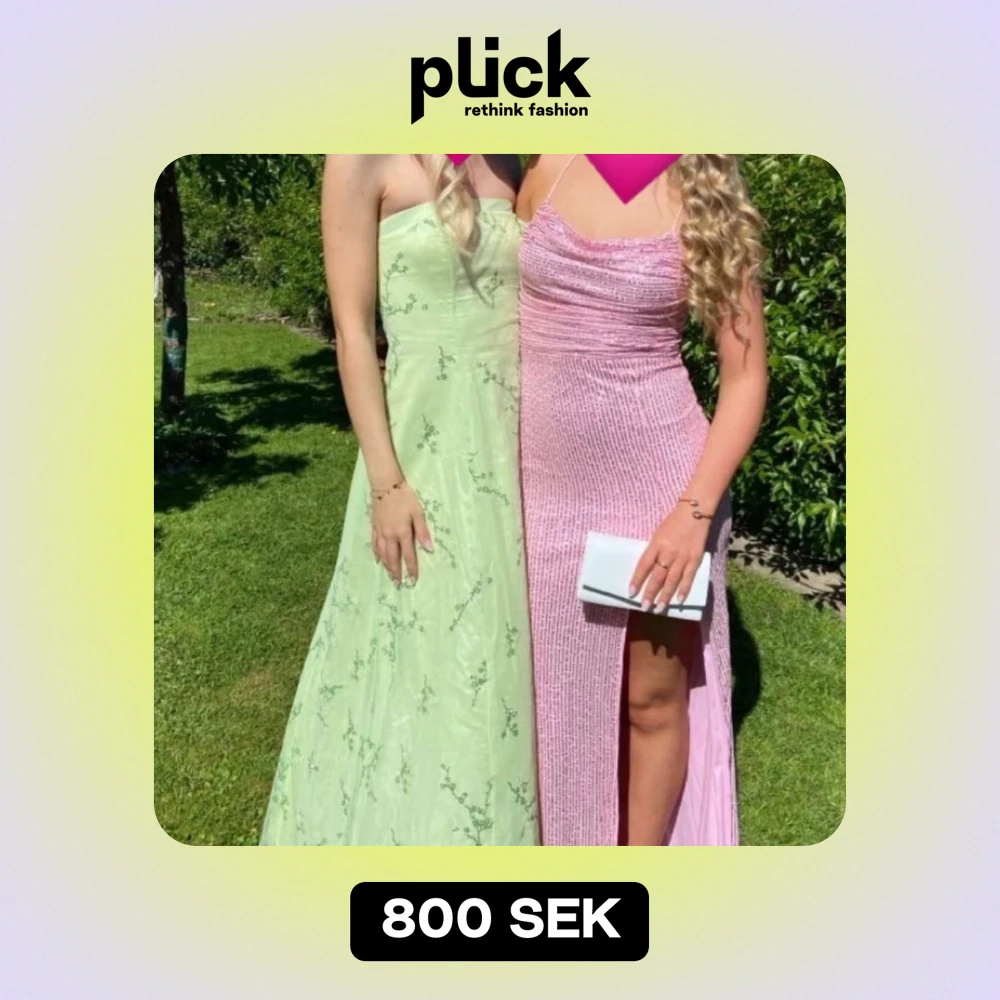 Elegant ljusgrön balklänning med blommigt mönster. Användes på studentbal! Axelbandslös design med snörning i ryggen och dragkedja. Den består av 3 lager av tyll i botten vilket gör att den får en snygg form! I storlek S, jag är 170 med 5 cm klack. Skriv vid frågor eller för fler bilder💕💕