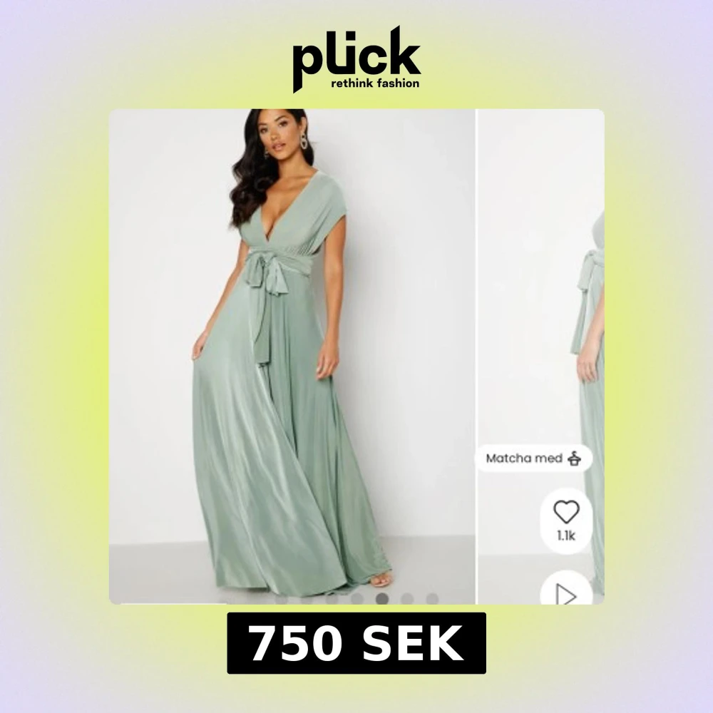 Aldrig använd. Supersnygg ljusgrön långklänning från Goddiva i satinliknande polyester. Klänningen har v-ringning, omlottliv och breda band som kan knytas på flera sätt. Perfekt för dig som vill ha en elegant och flowy look med extra volym i kjolen.