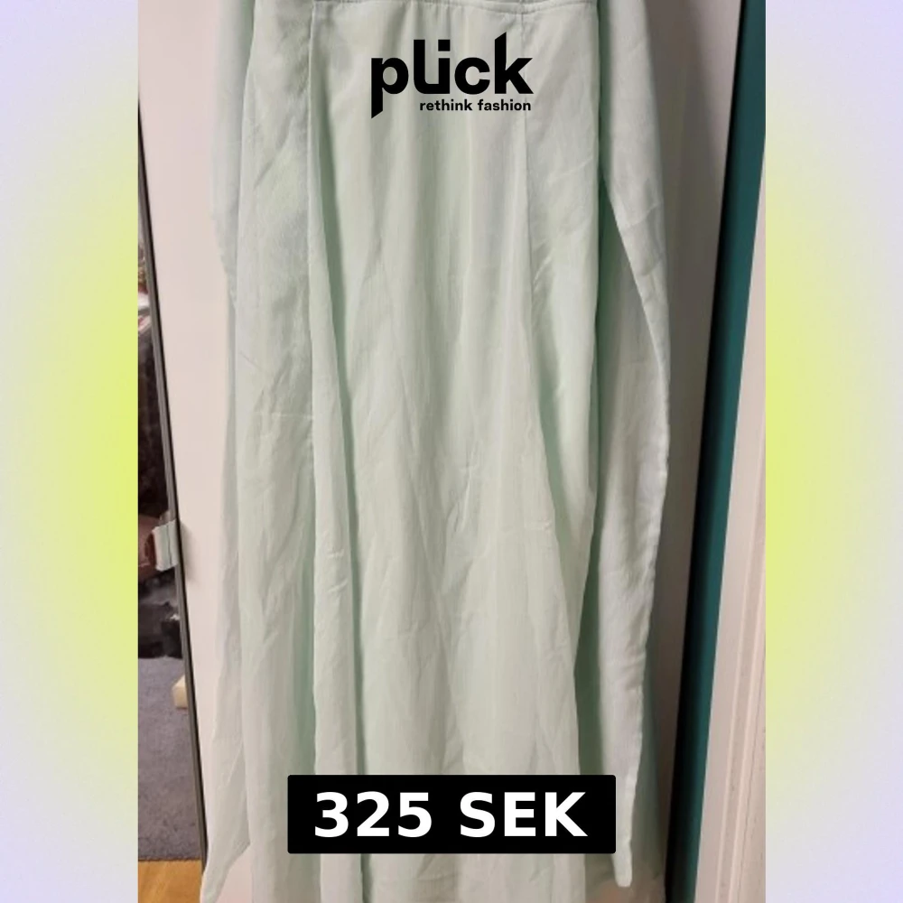 Säljer en ljusgrön långklänning från H&M i storlek 42. Klänningen har smala axelband, rynkade detaljer vid bysten och ett mjukt, flowy tyg som ger en skön känsla. Perfekt för dig som gillar en enkel men elegant look med lite extra längd.